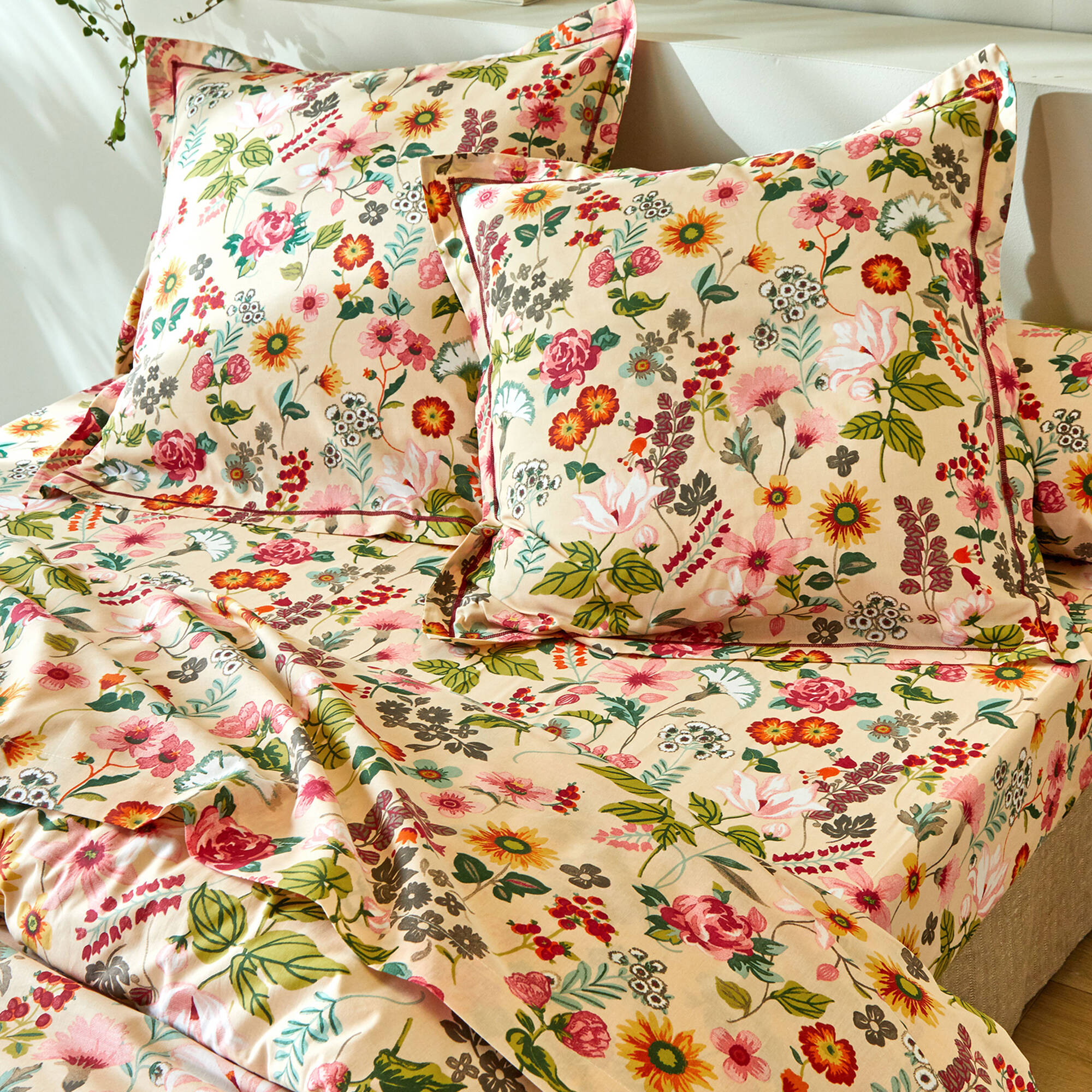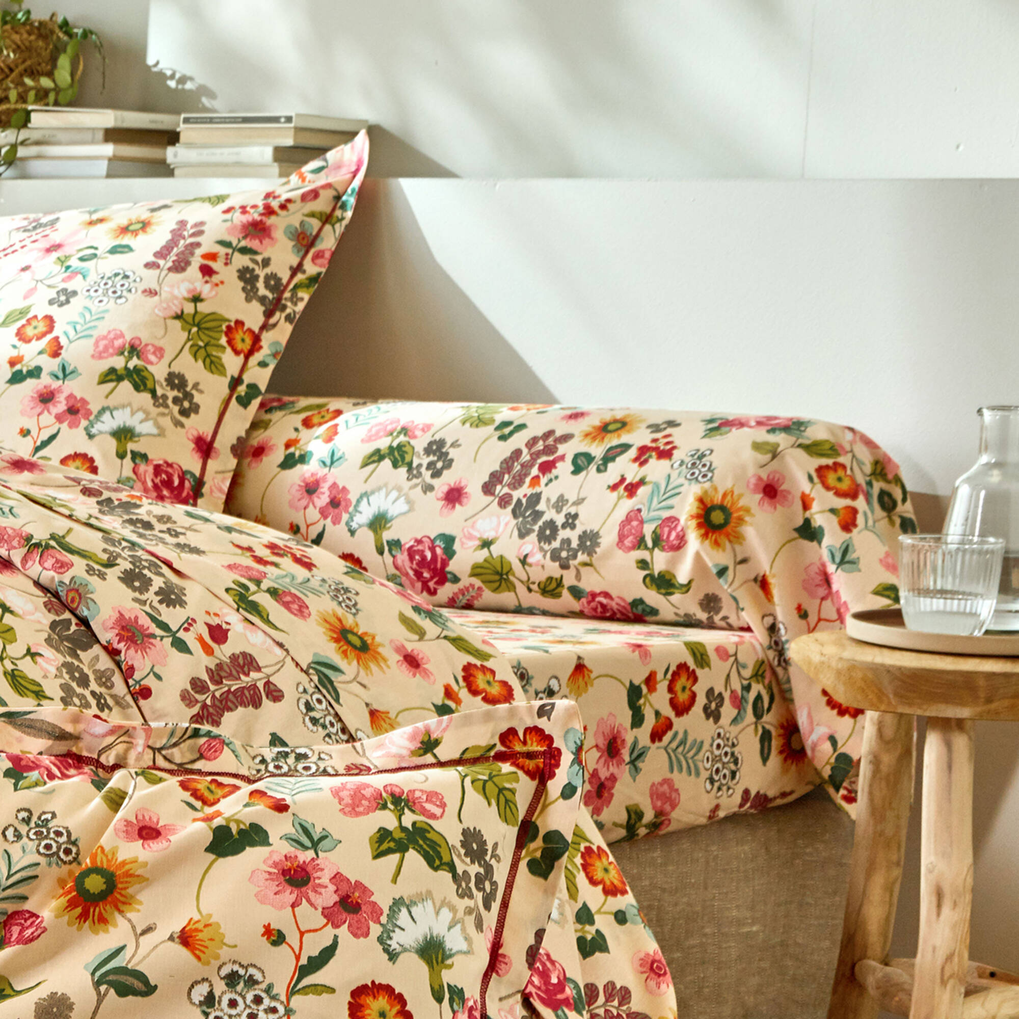 Bedlinnen Kelly in katoen met bloemenprint (beige)