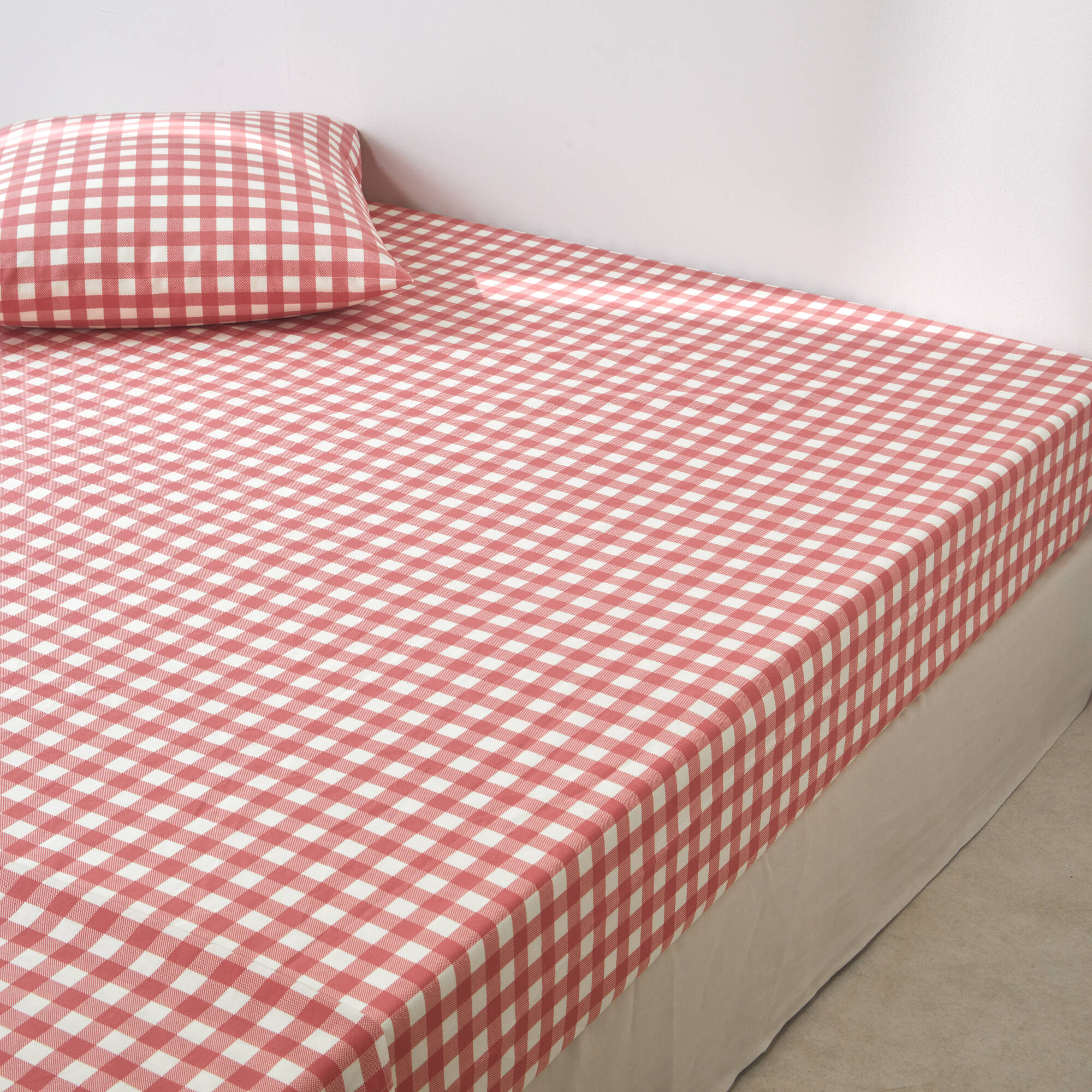 Bedlinnen Lou met ruitenprint - in katoen (rozenhout)