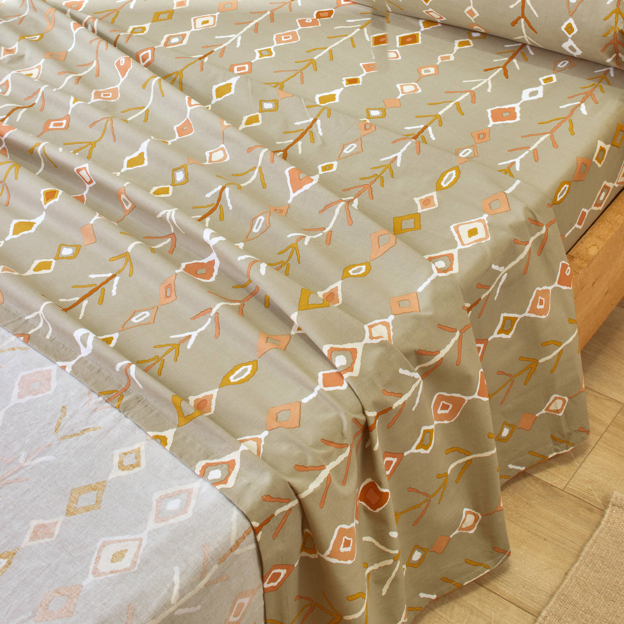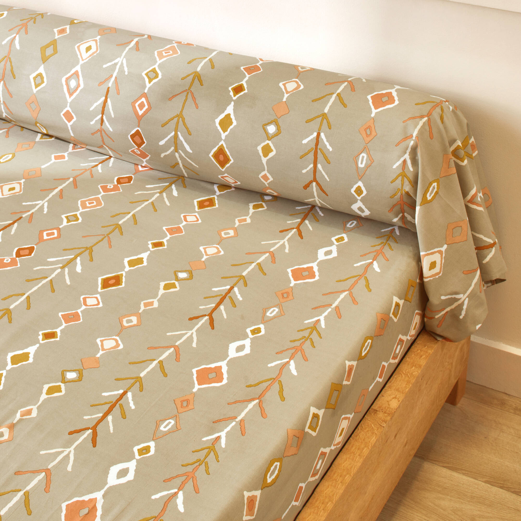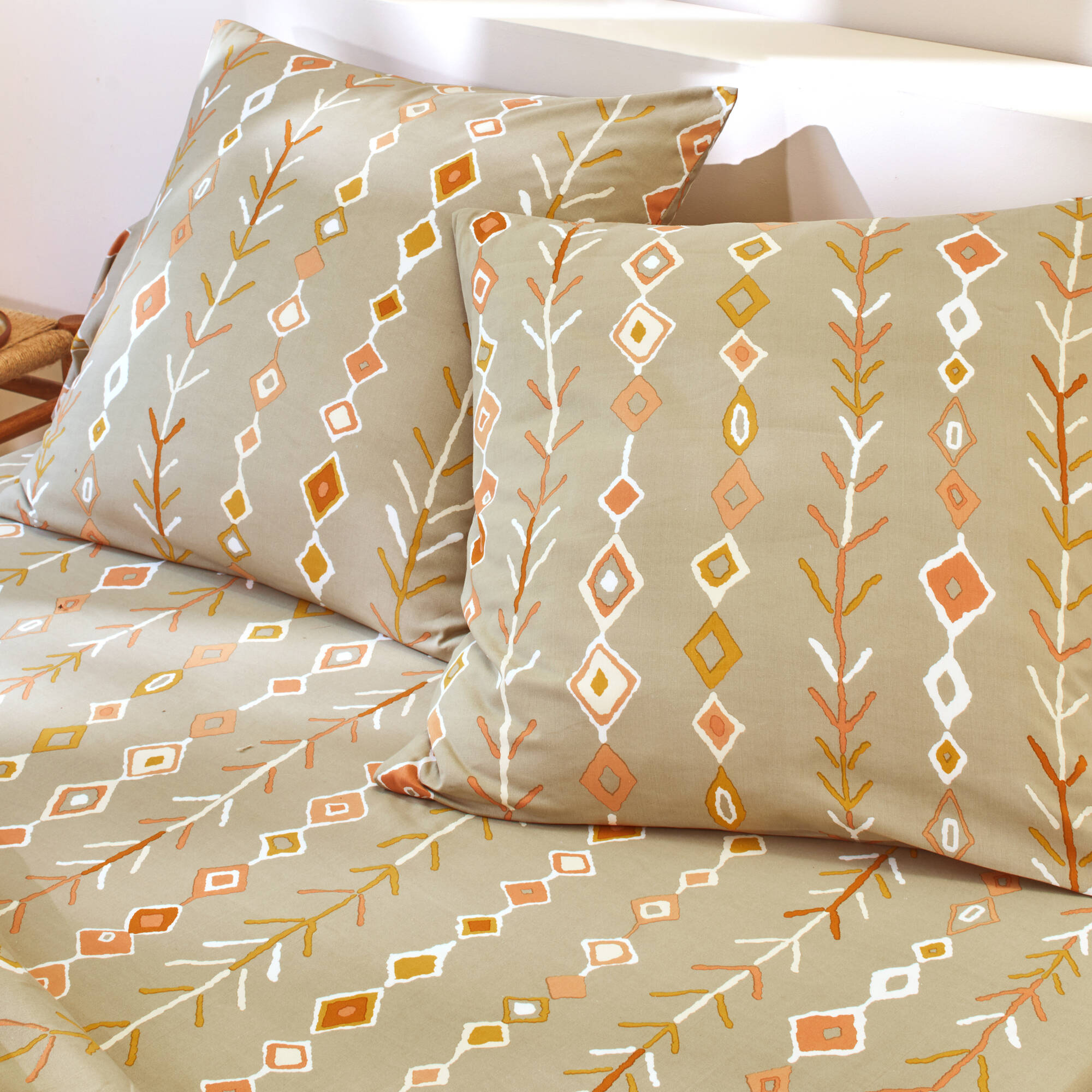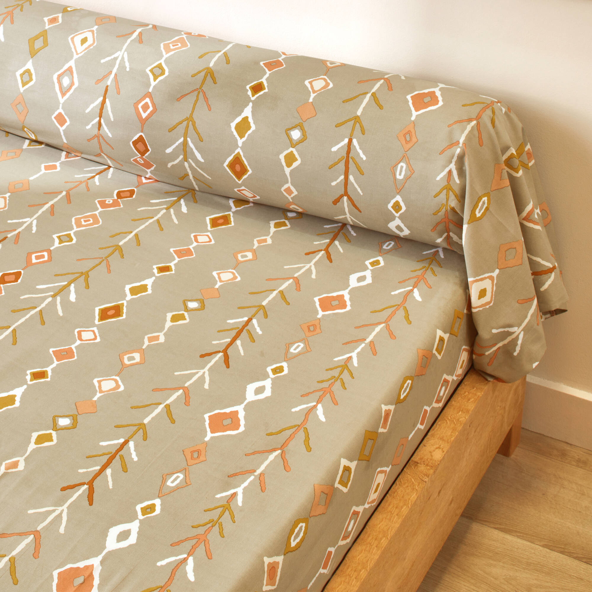 Bedlinnen Mahe in katoen met etnische print (beige)