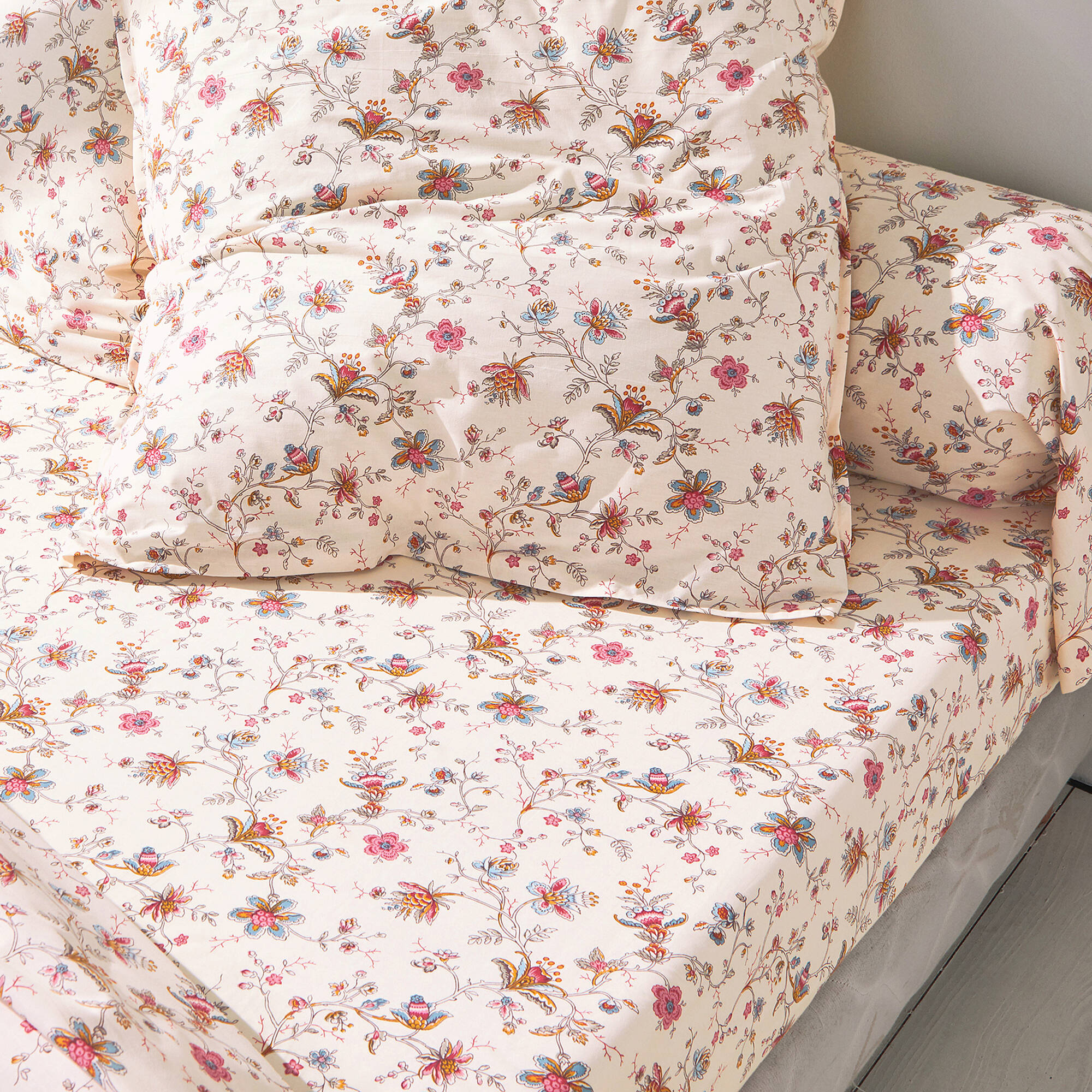 Bedlinnen Margaux in katoen met bloemenprint (ecru)