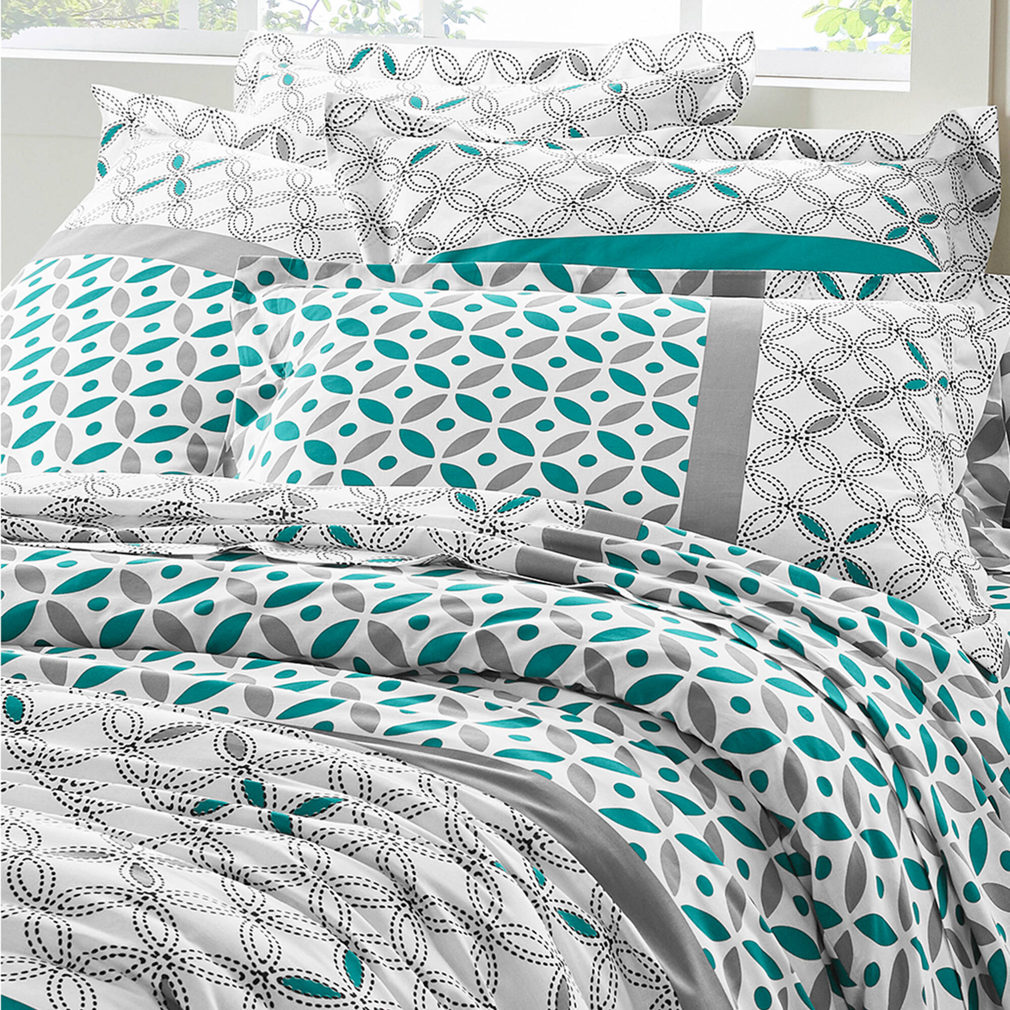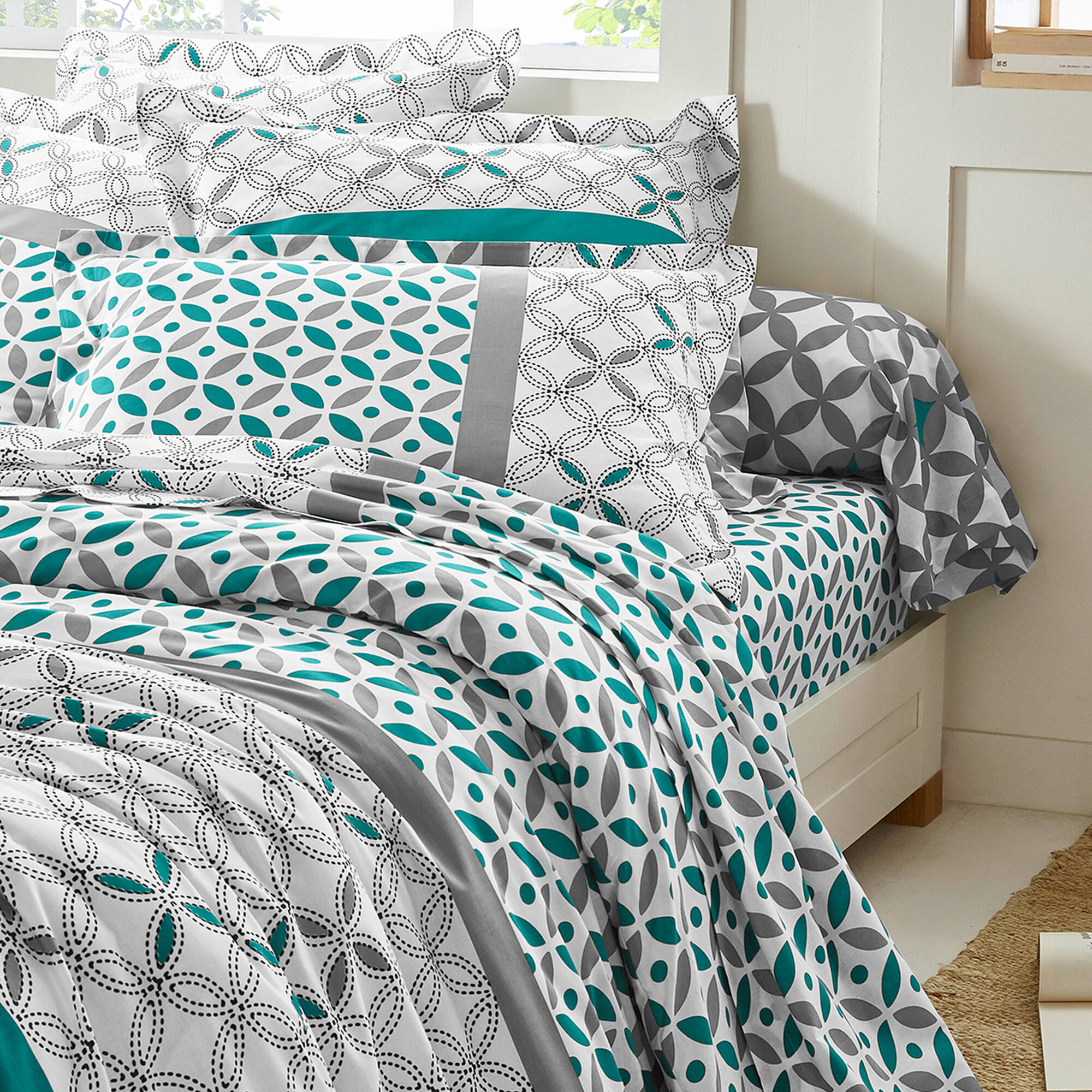 Bedlinnen Marlow, katoen met geometrische motieven (grijs / groen)