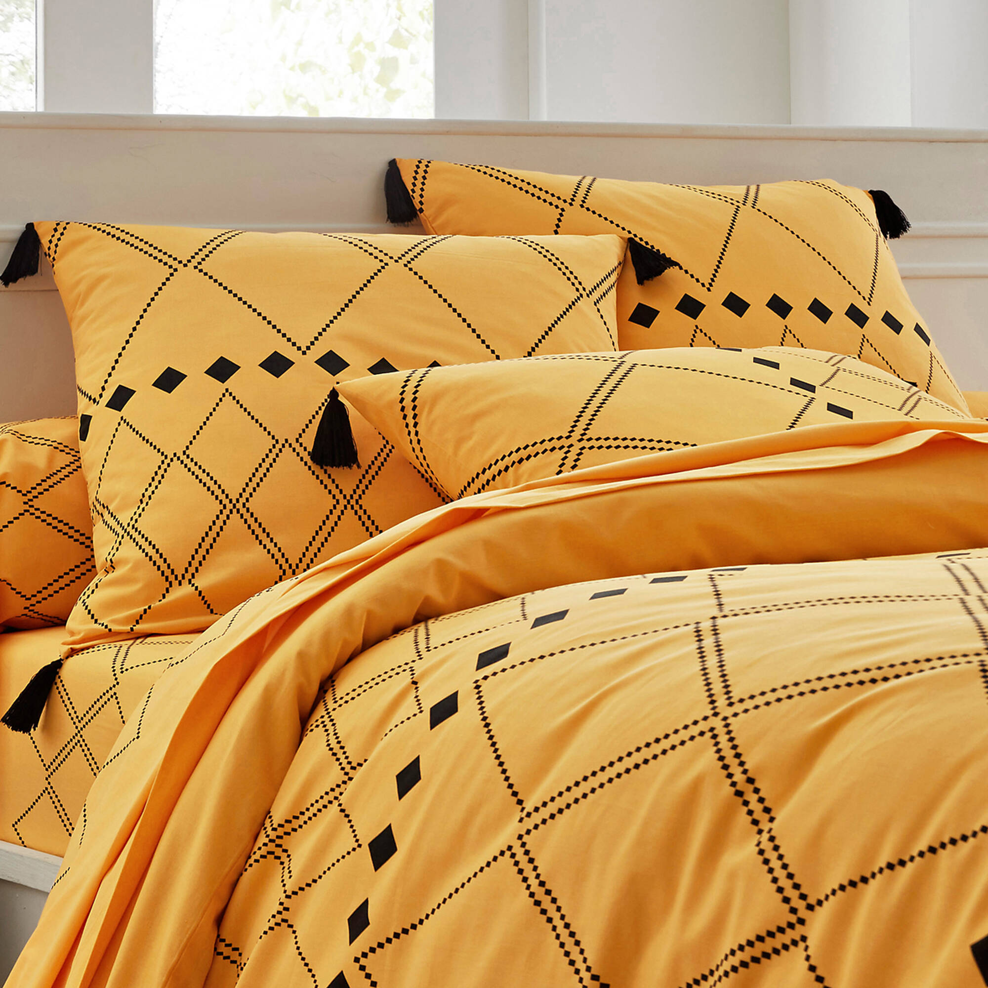 Bedlinnen Massai, in katoen met grafische motieven, afgewerkt met pompons