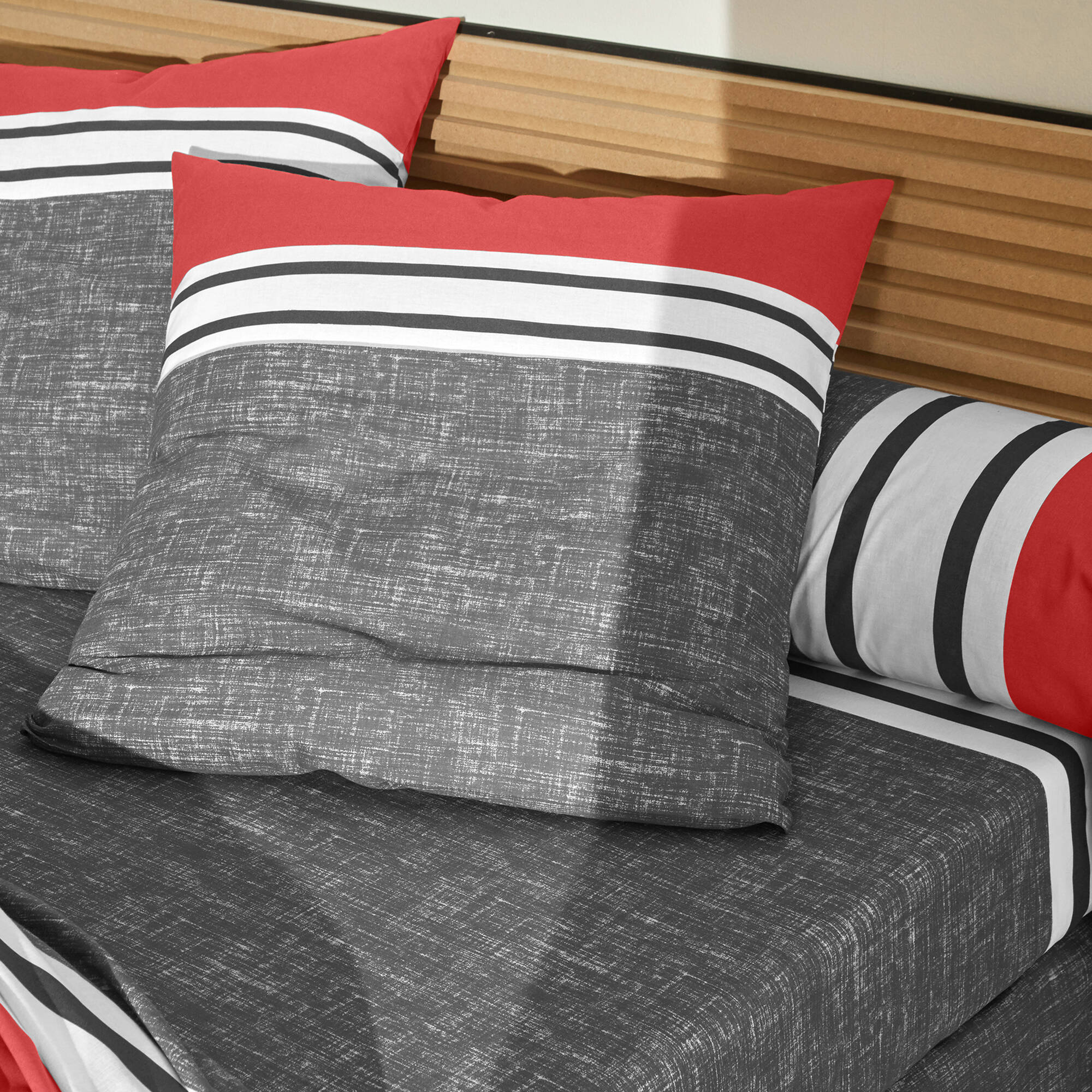 Bedlinnen Nathalie in katoen (grijs / terracotta)