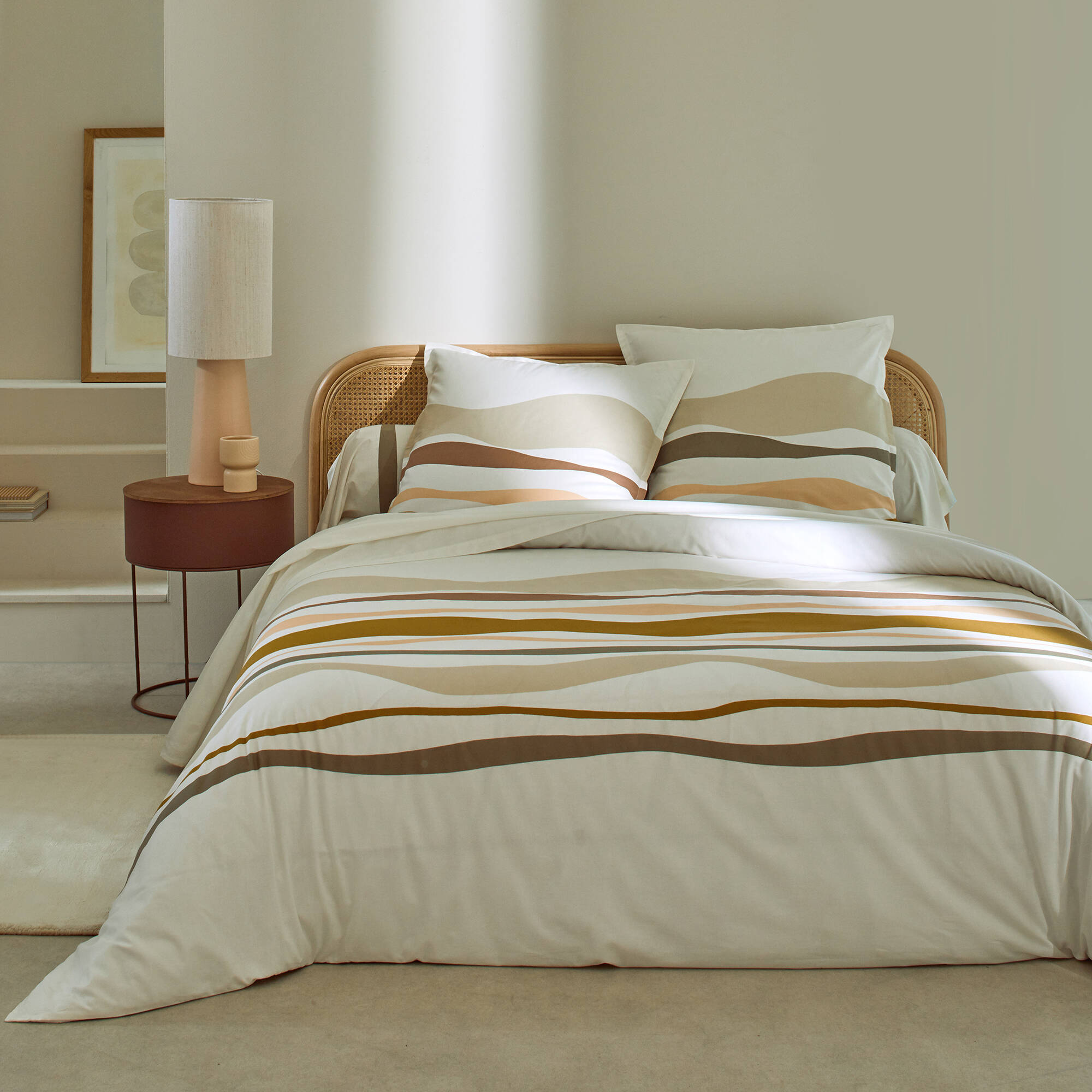 Bedlinnen Ondée met golvenprint - in katoen (zandkleur)