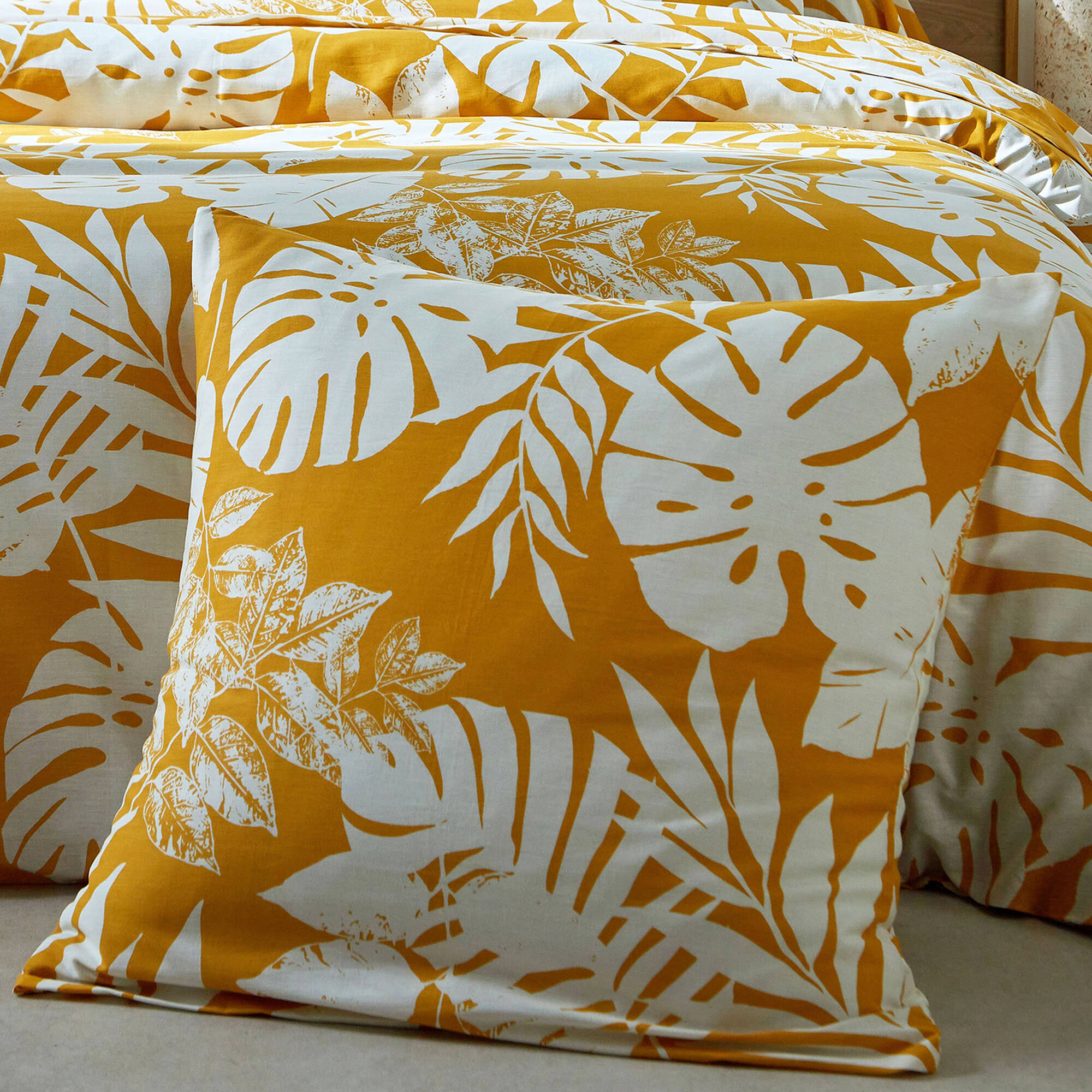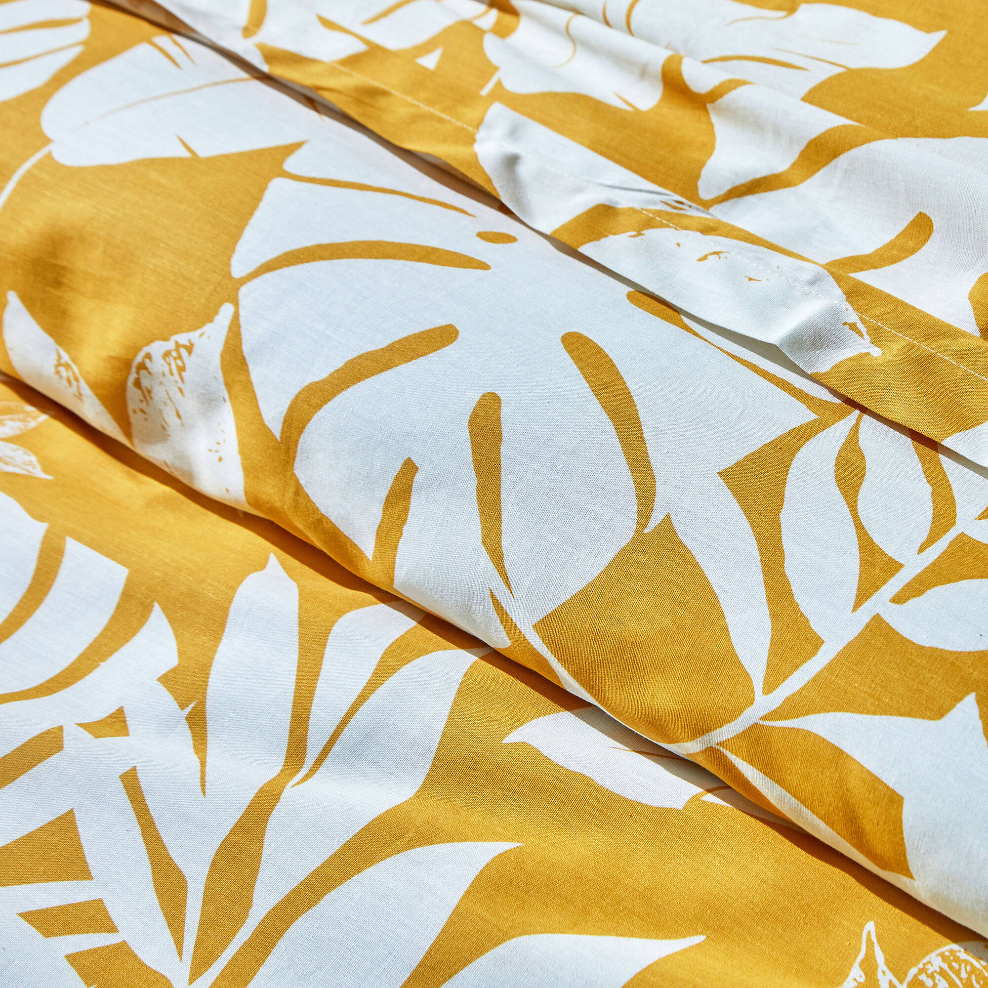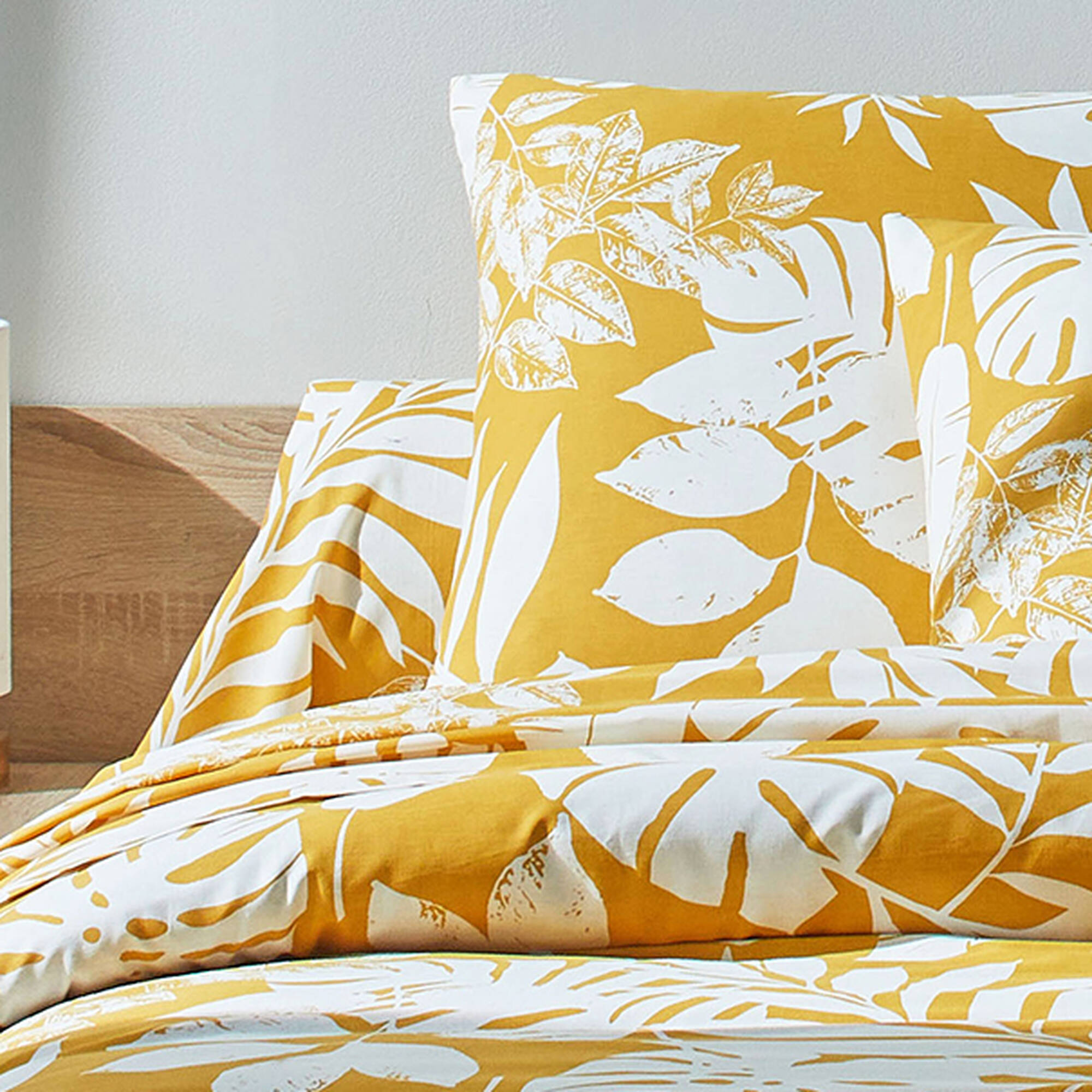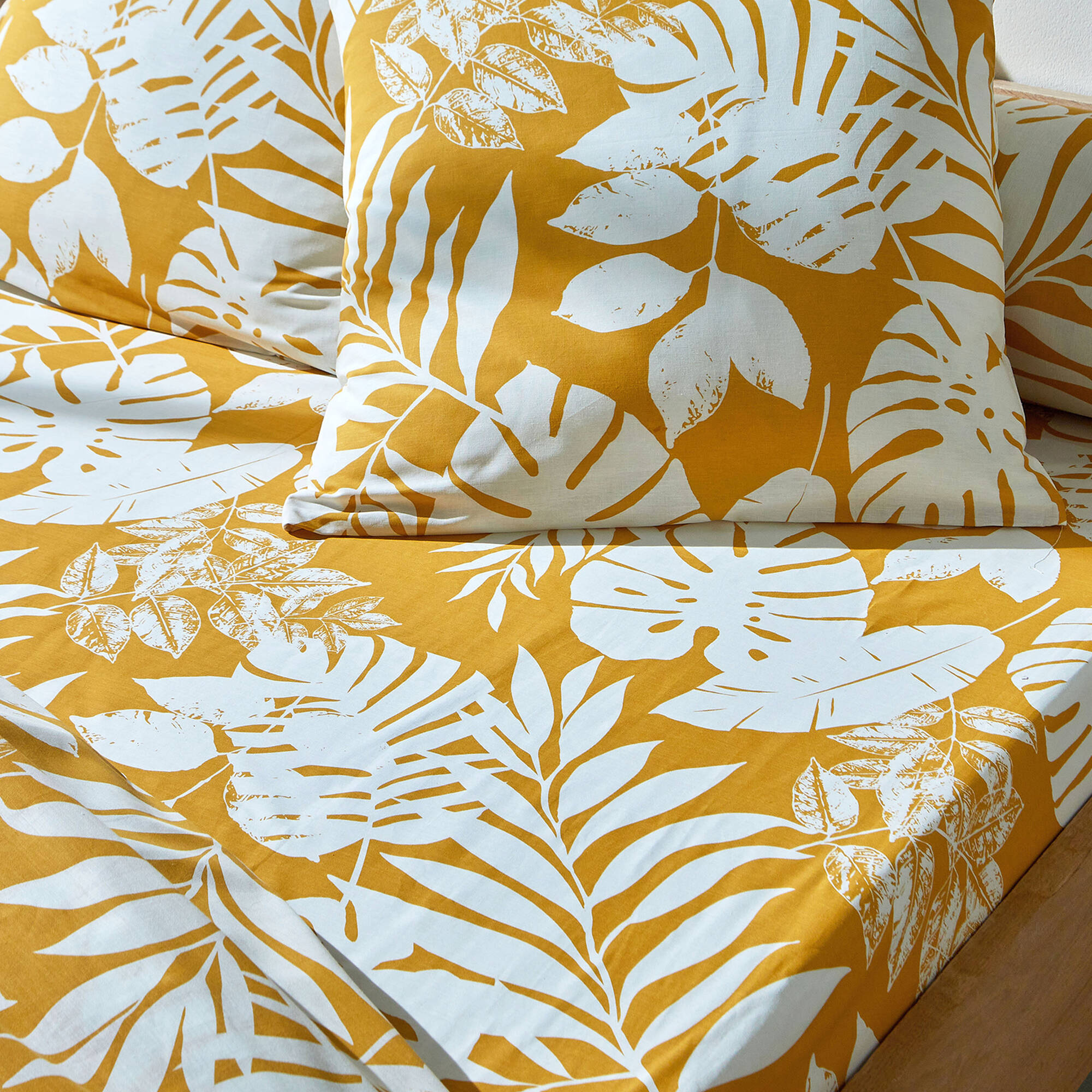 Bedlinnen Paddy met bladerenprint, katoen (oker)