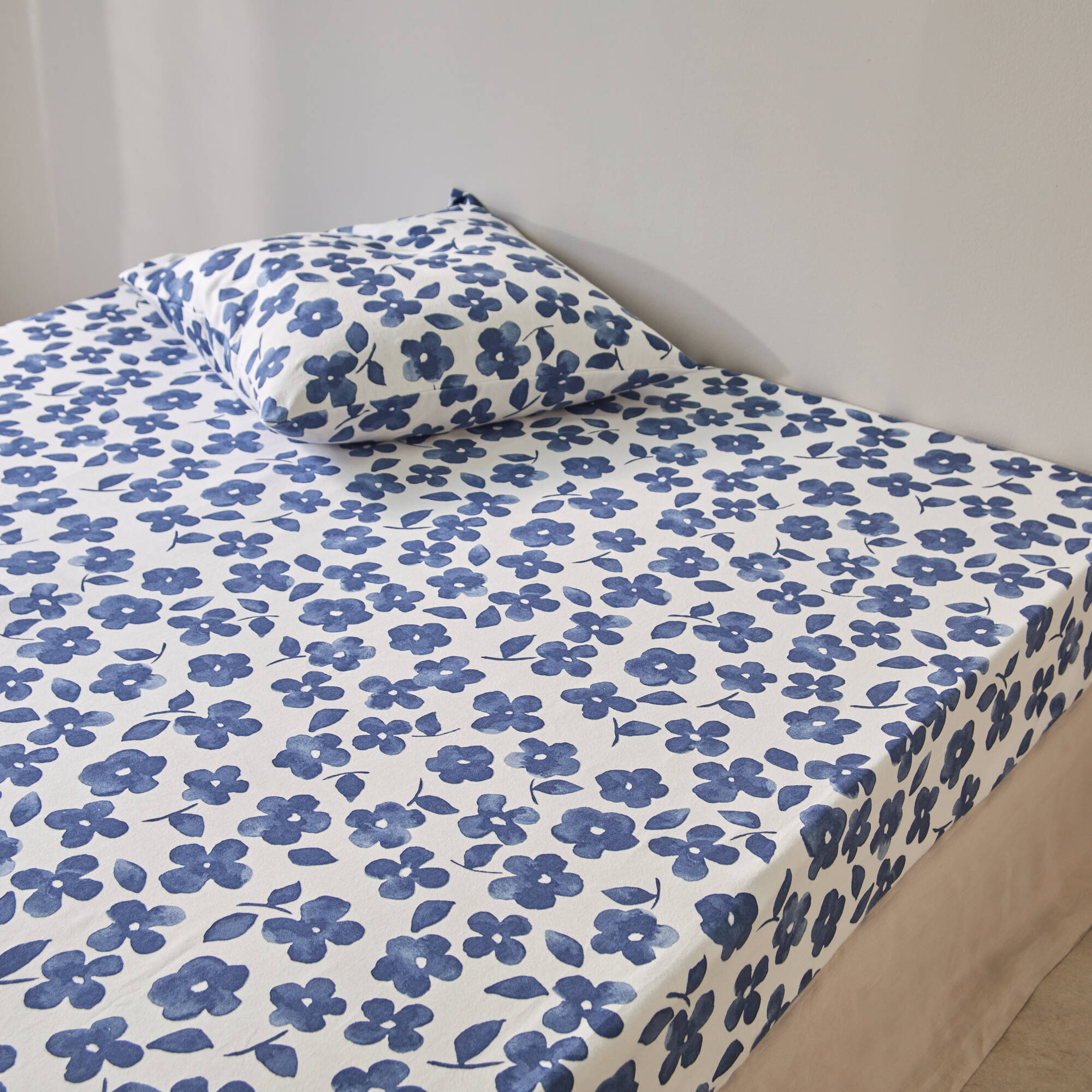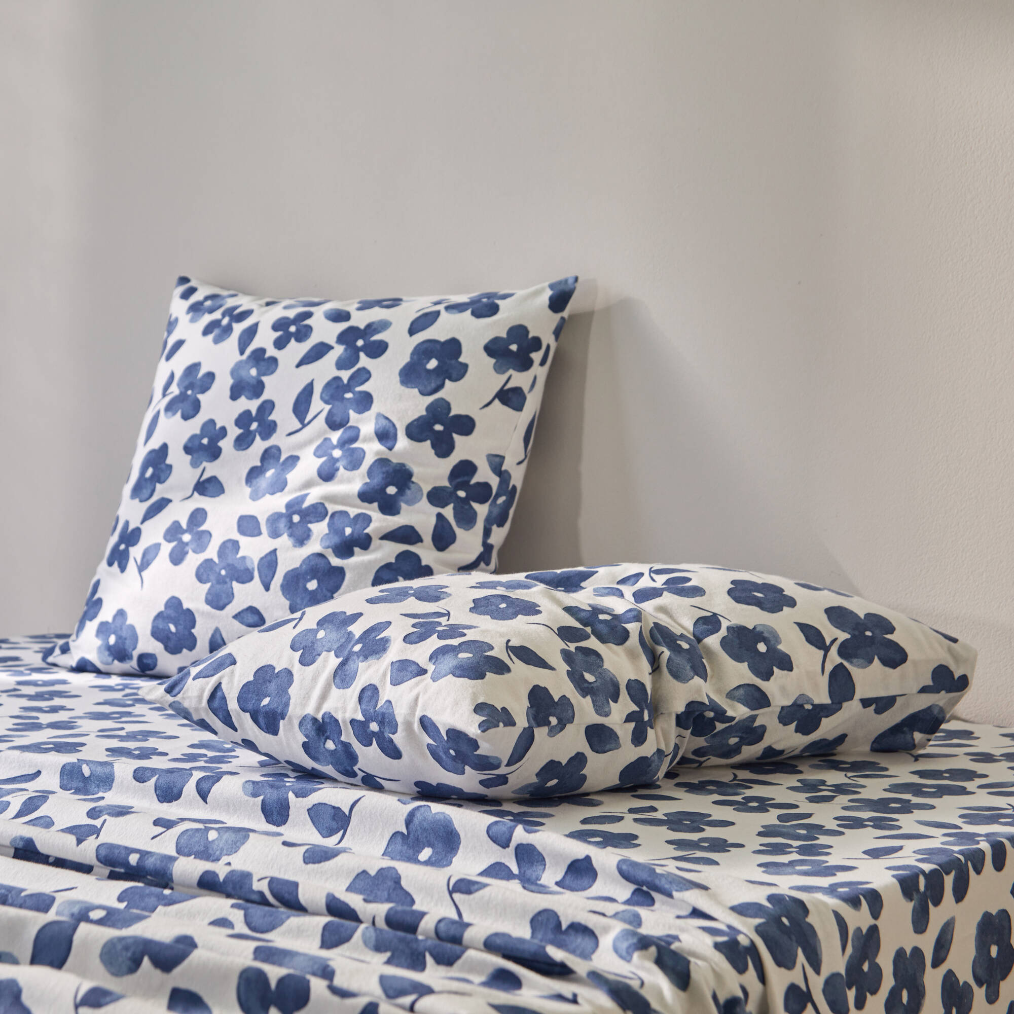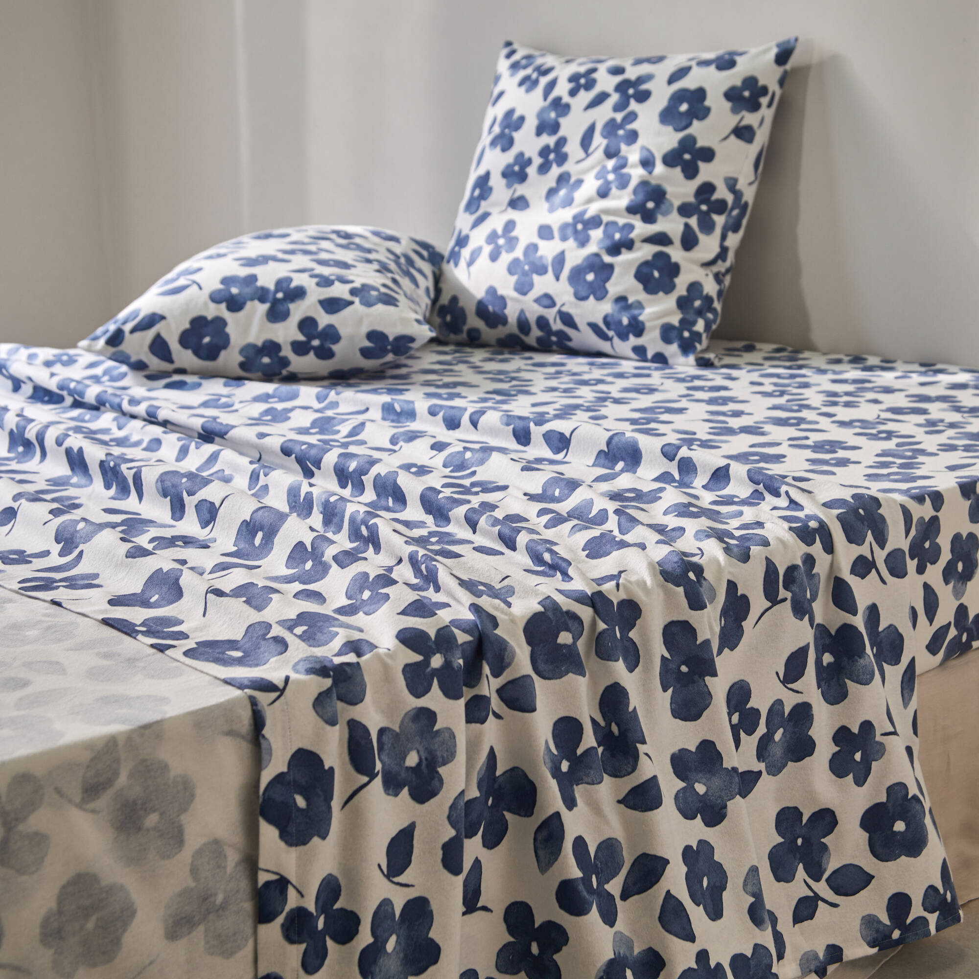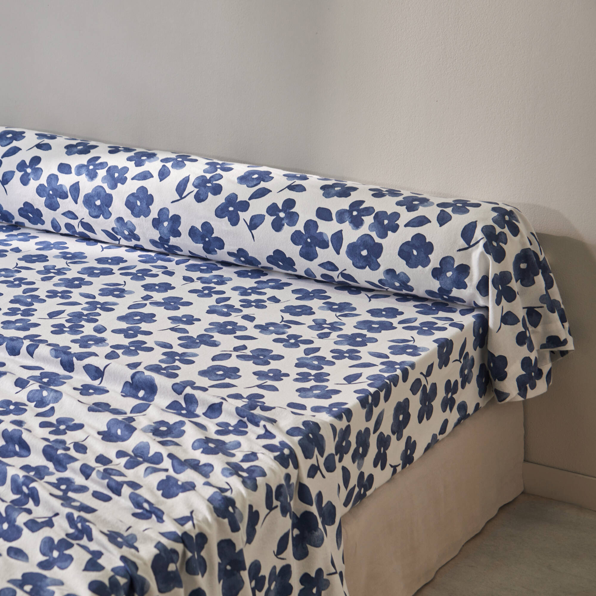 Bedlinnen Petunia in bedrukt flanel (blauw)
