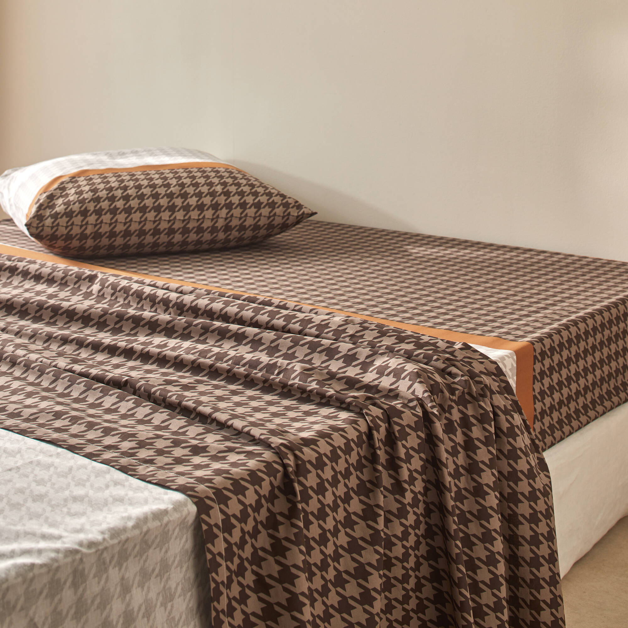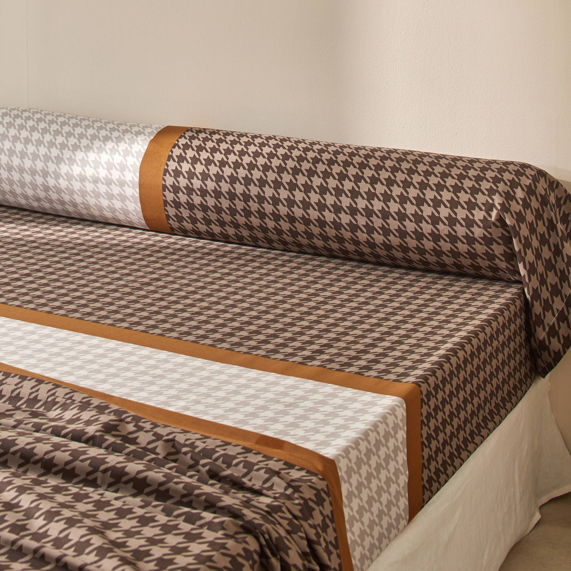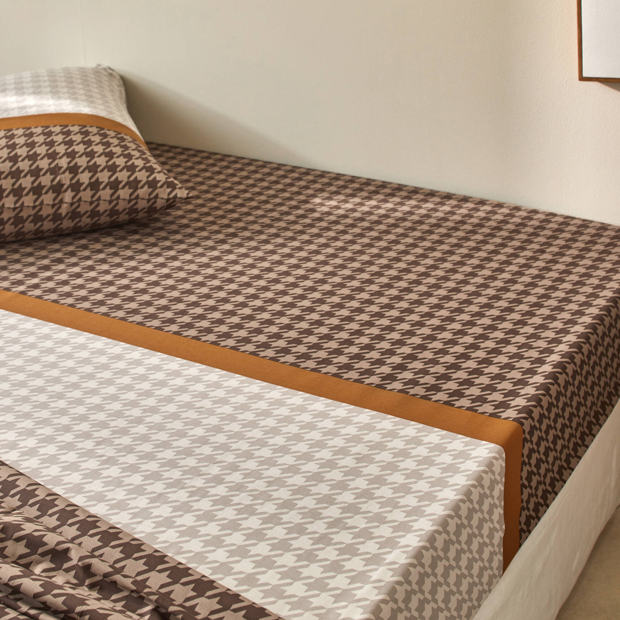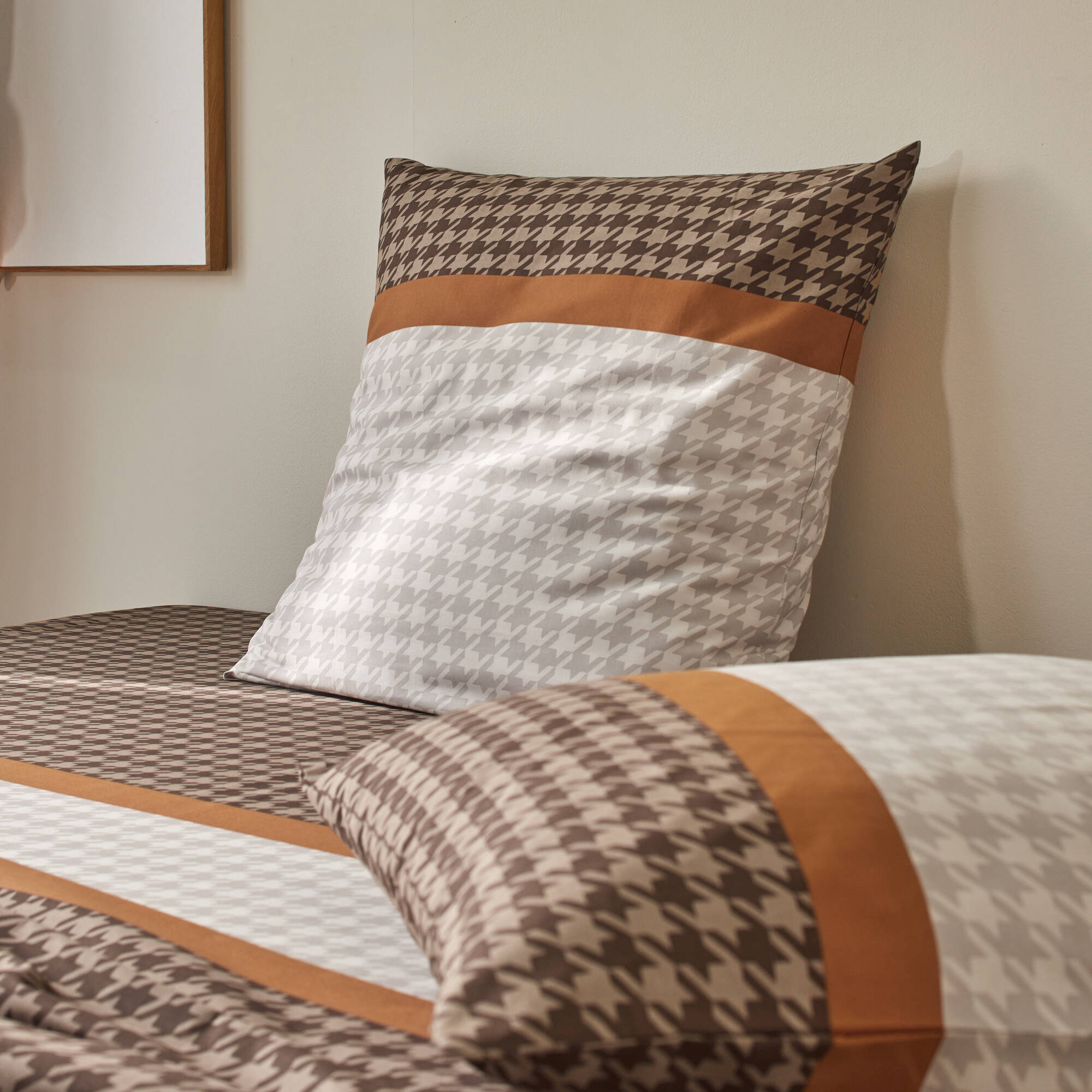 Bedlinnen Pierre in katoen met pied-de-poule print (beige)