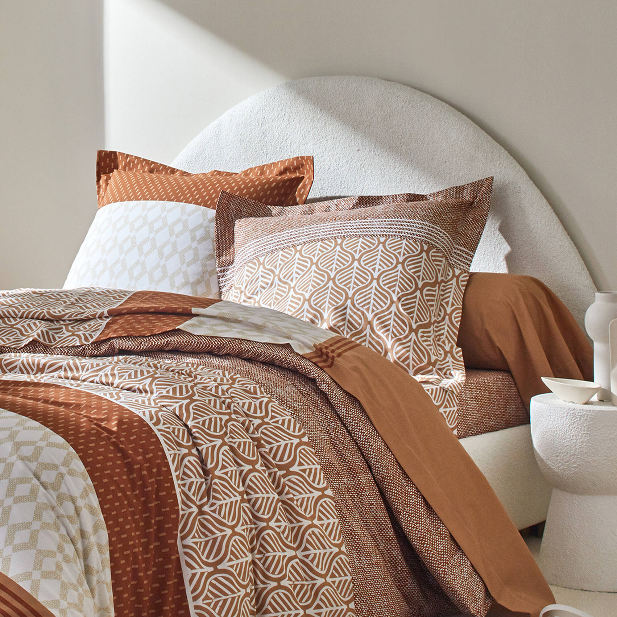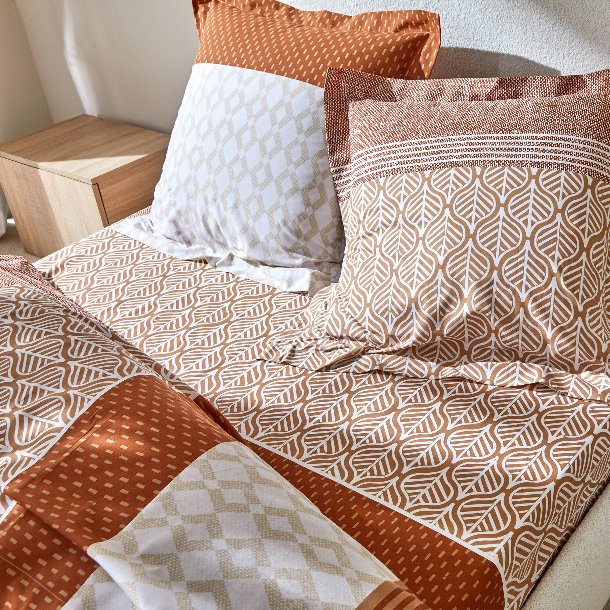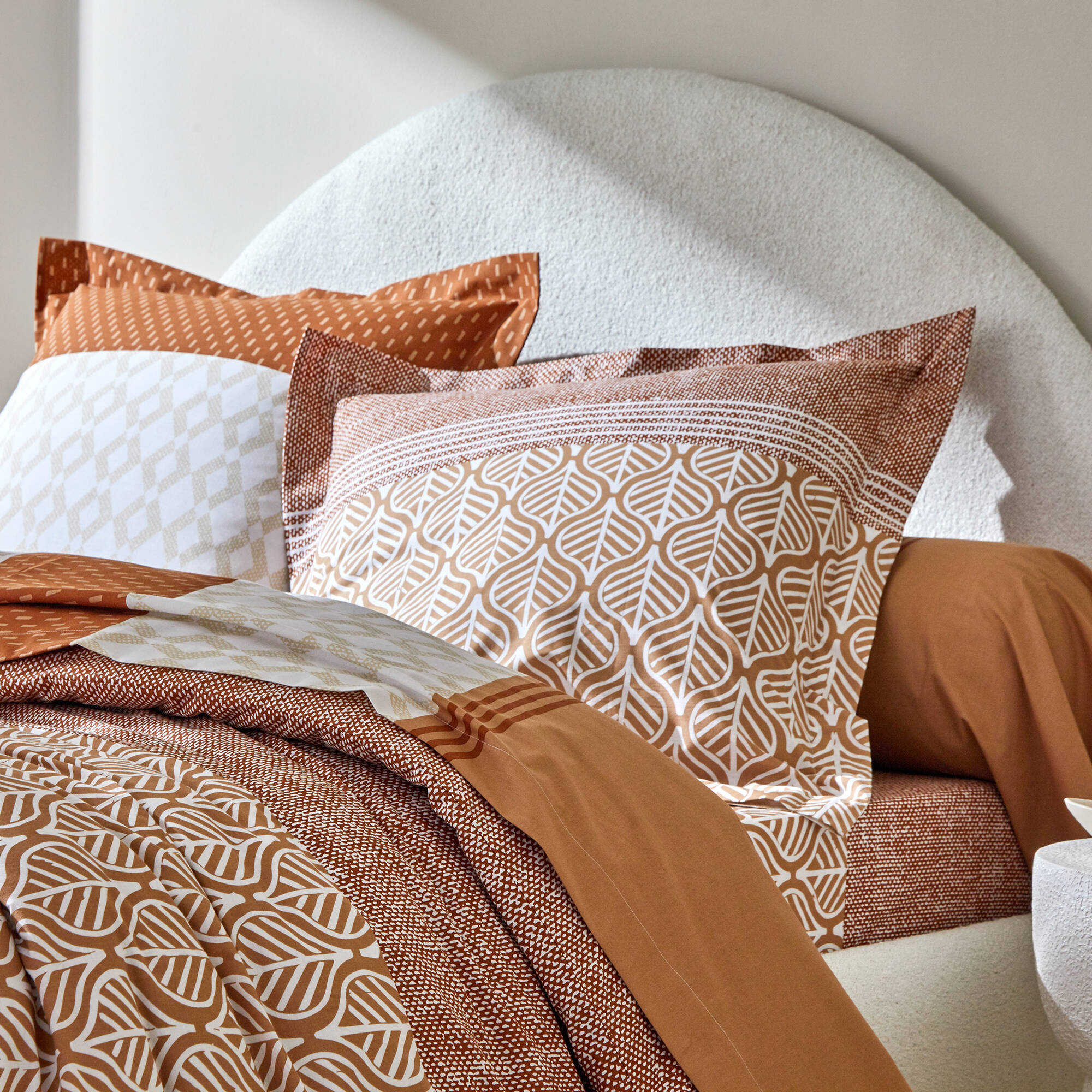Bedlinnen Tommy in katoen met geometrische print (karamel)