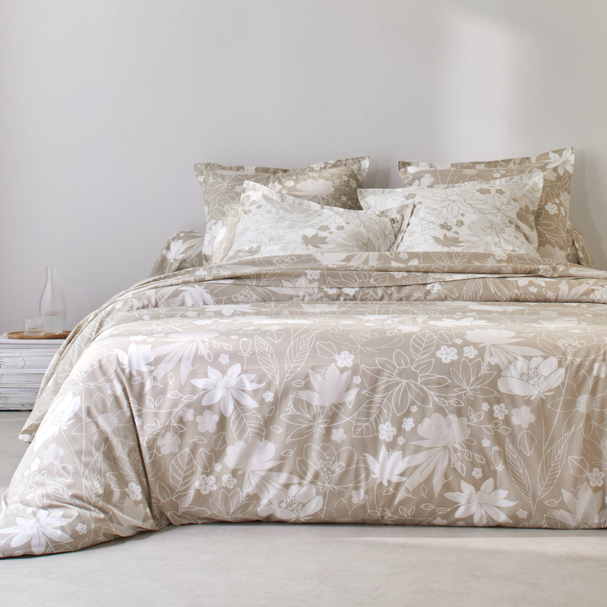 Bedrukt bedlinnen Pénélope, in katoen (grijsbeige)