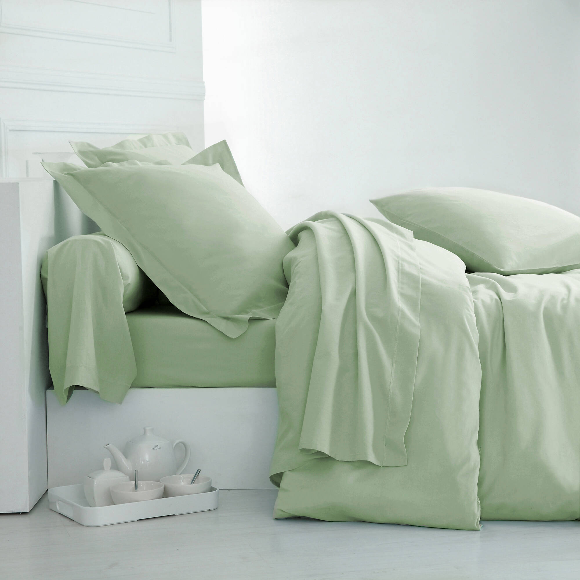 Effen bedlinnen - polyester/katoen, Colombine (amandel groen)