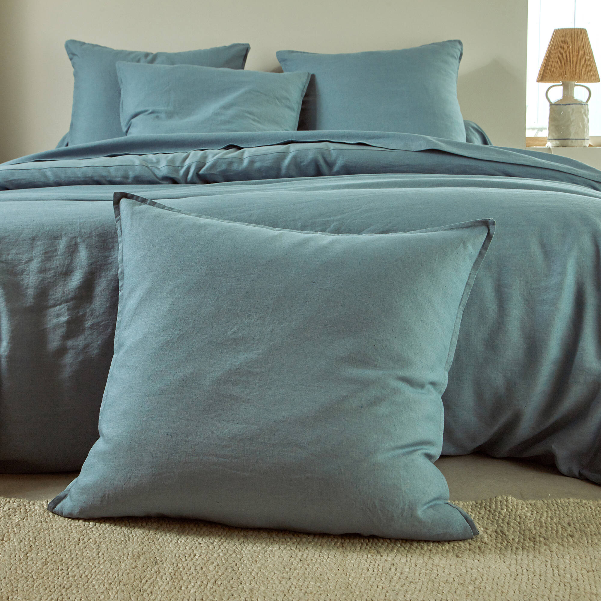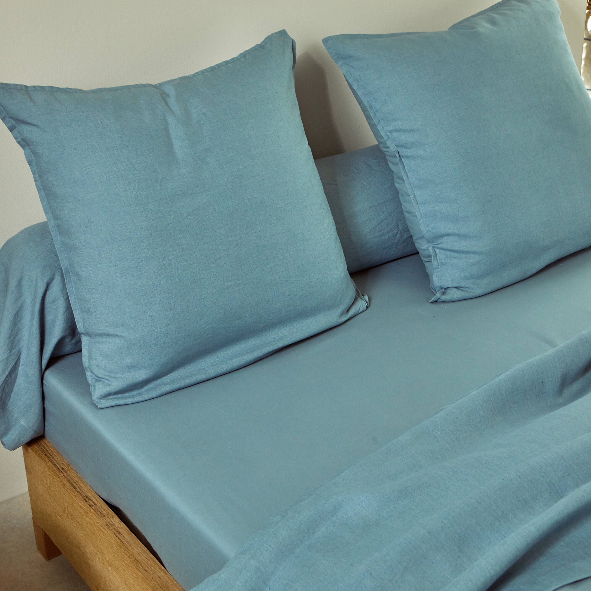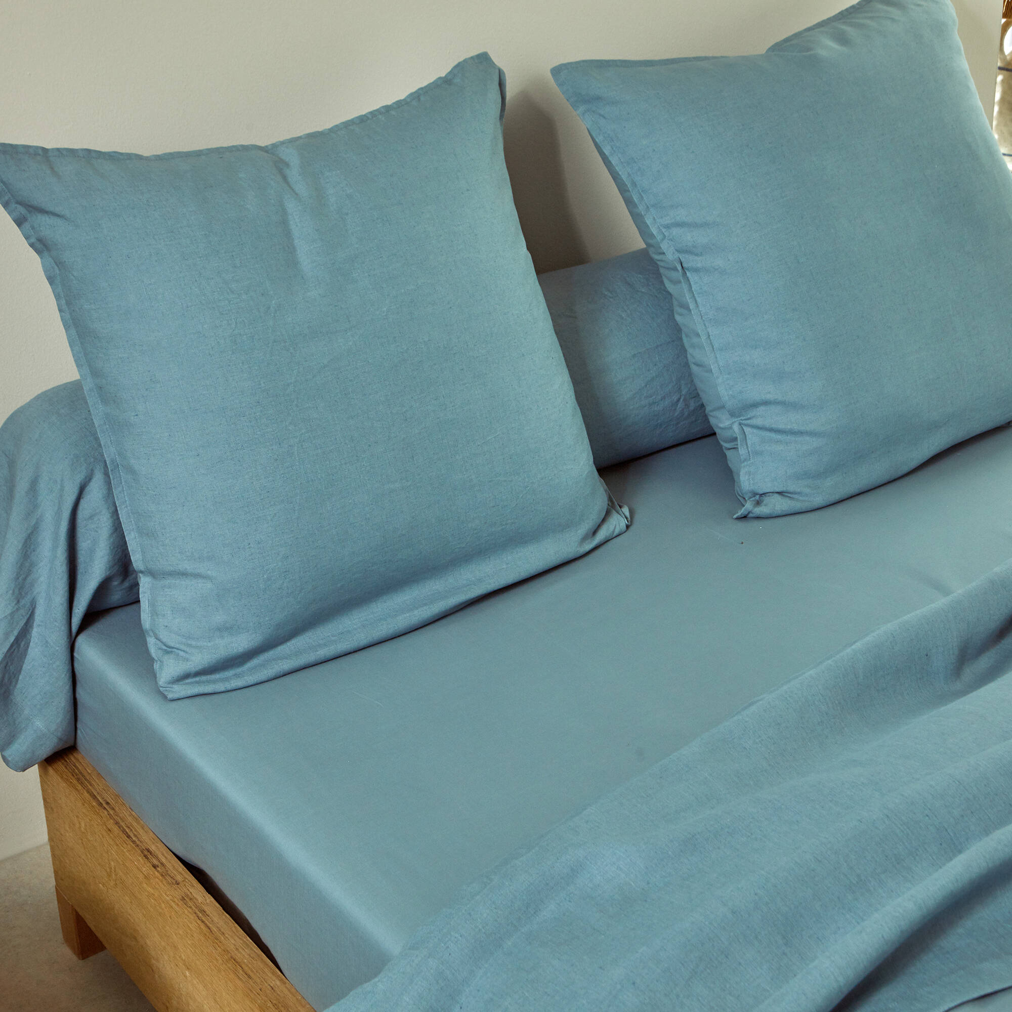 Effen bedlinnen, 2-zijdig in gewassen linnen/gewassen katoen (grijsblauw)