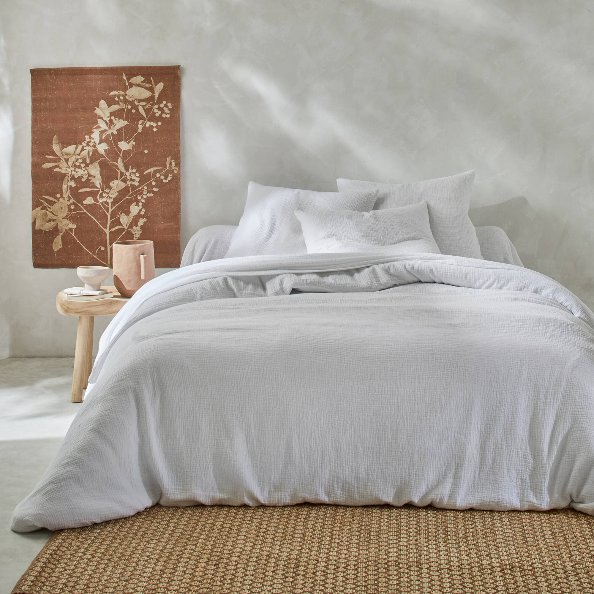 Effen bedlinnen in driedubbel katoengaas (wit)