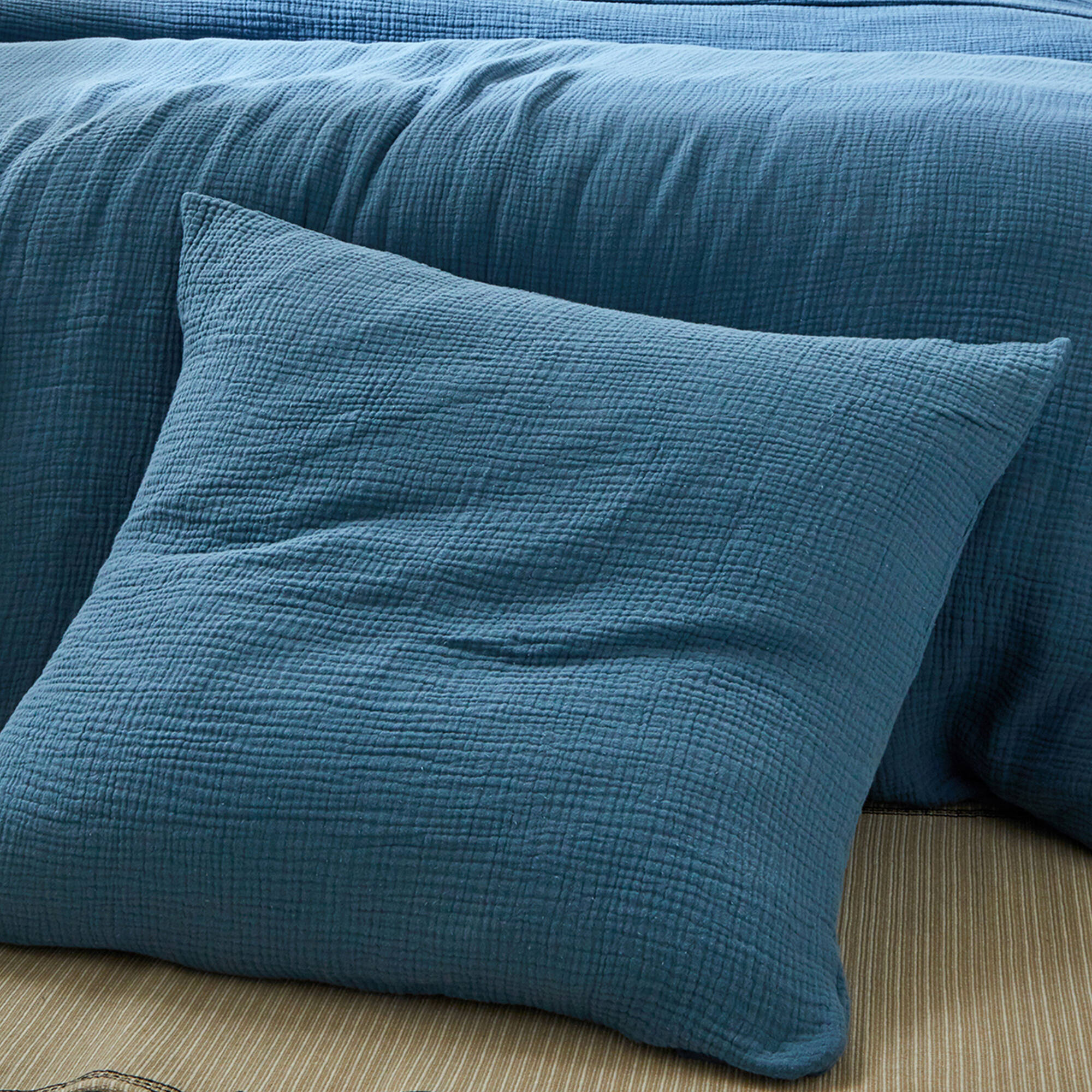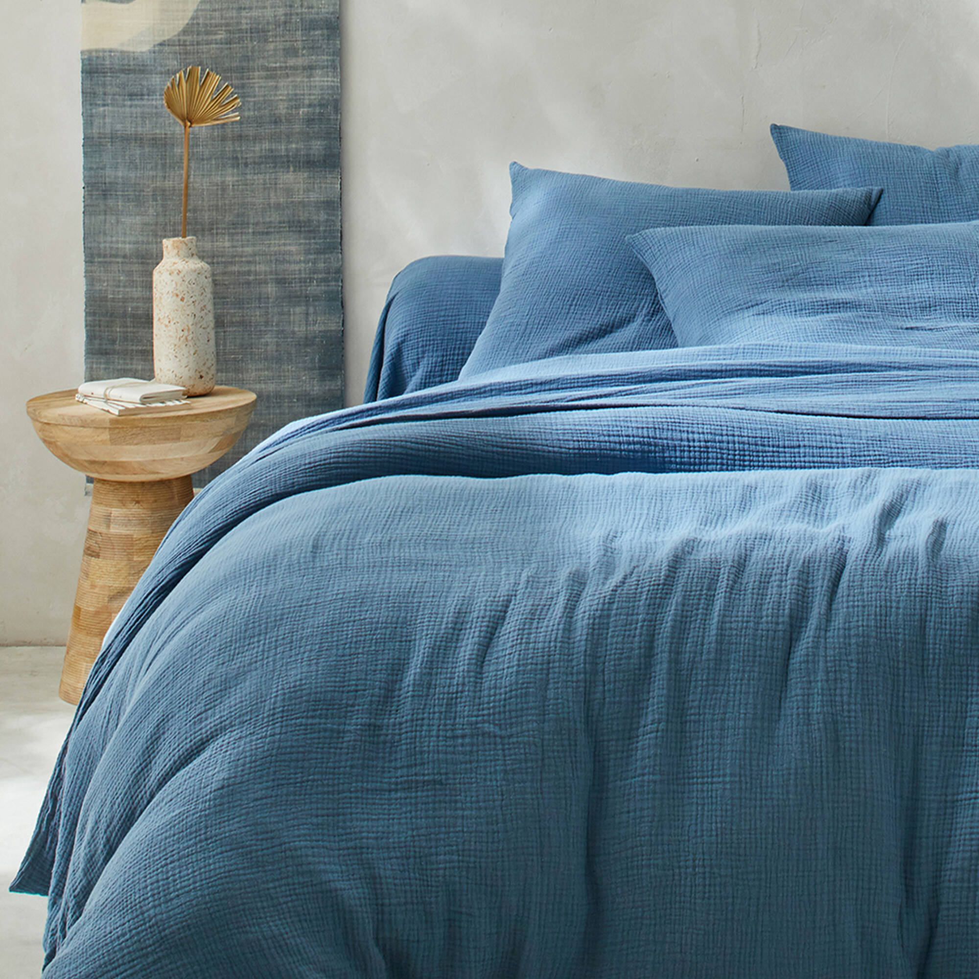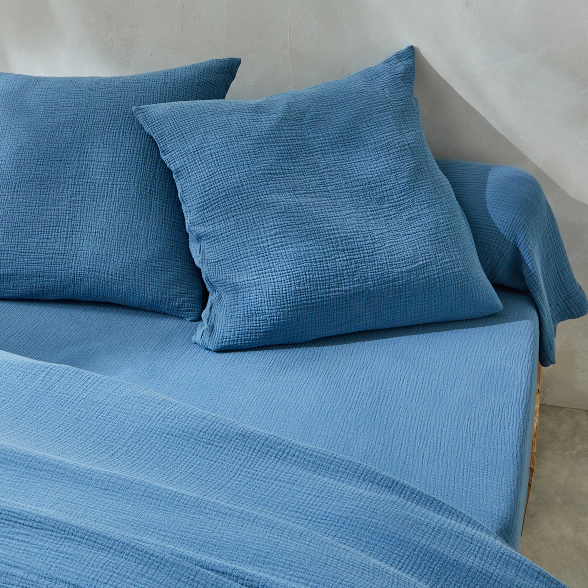 Effen bedlinnen in driedubbel katoengaas (blauw)