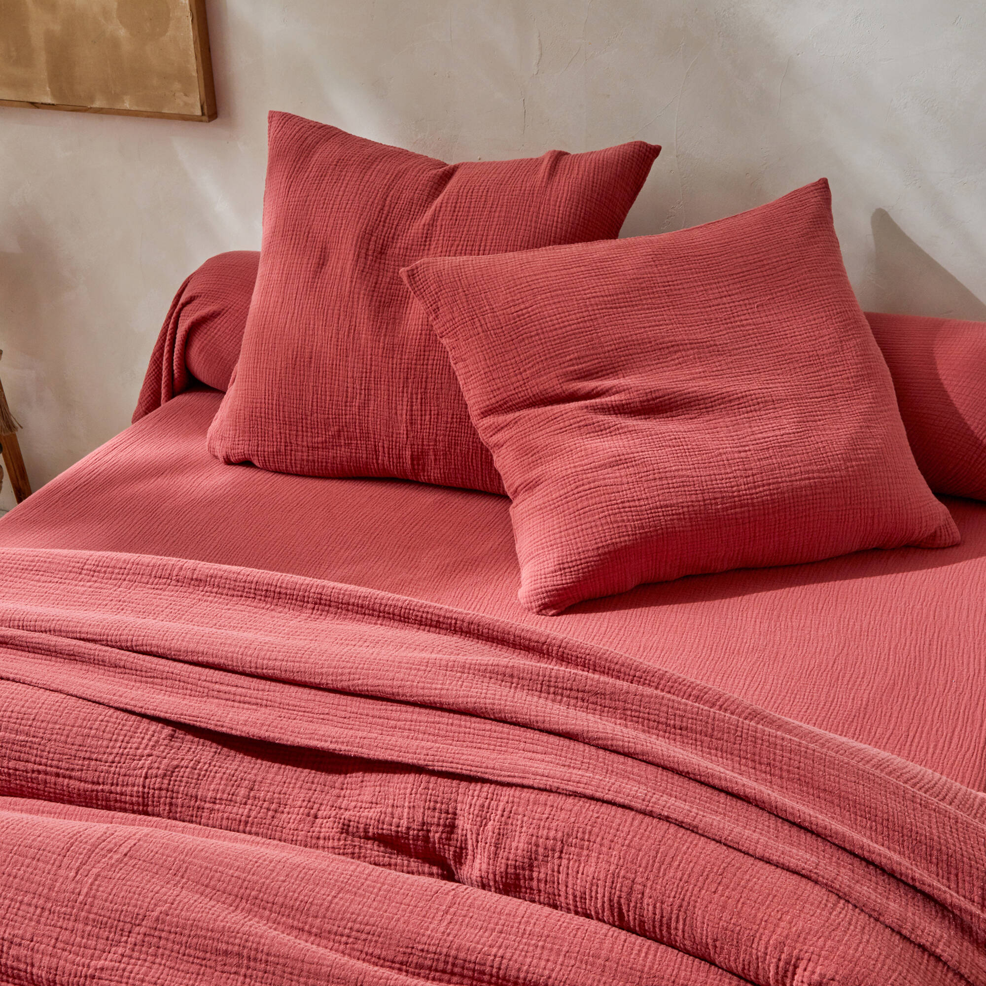 Effen bedlinnen in driedubbel katoengaas (rozenhout)
