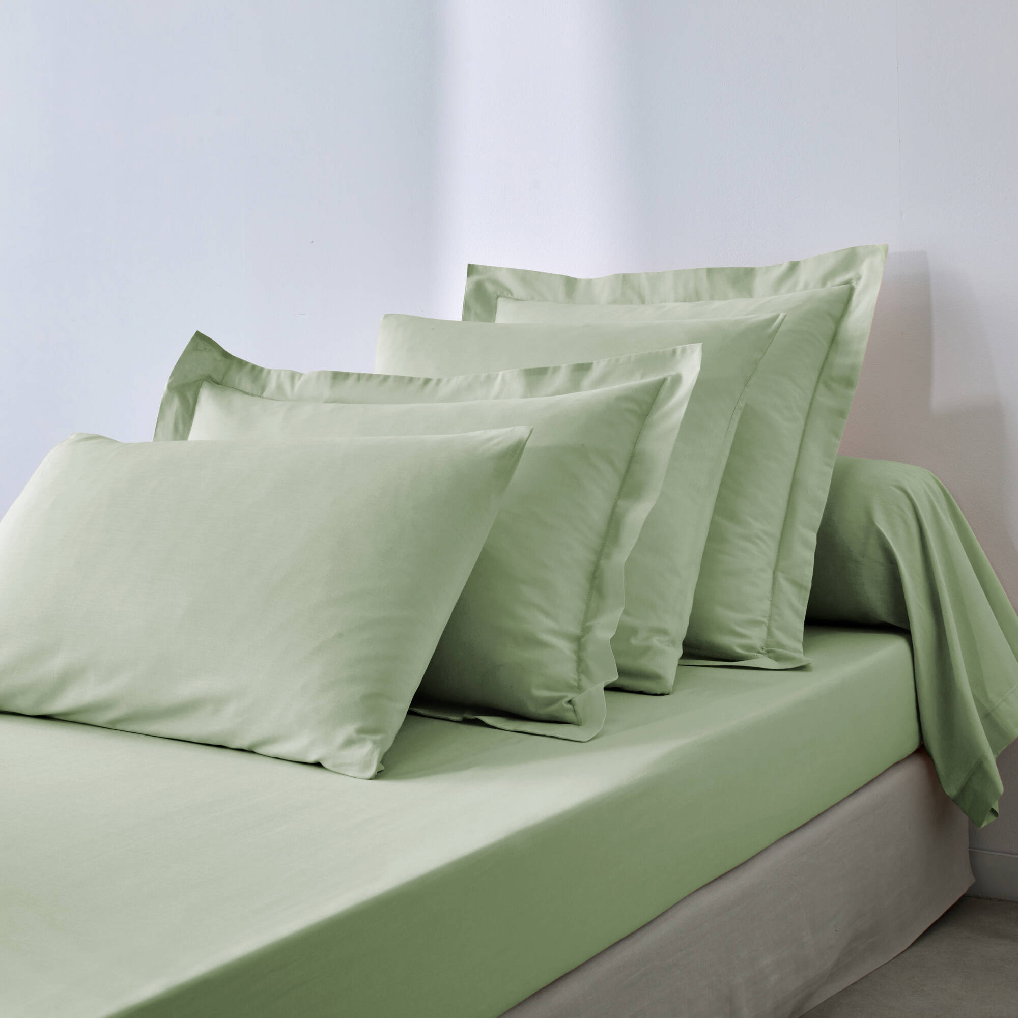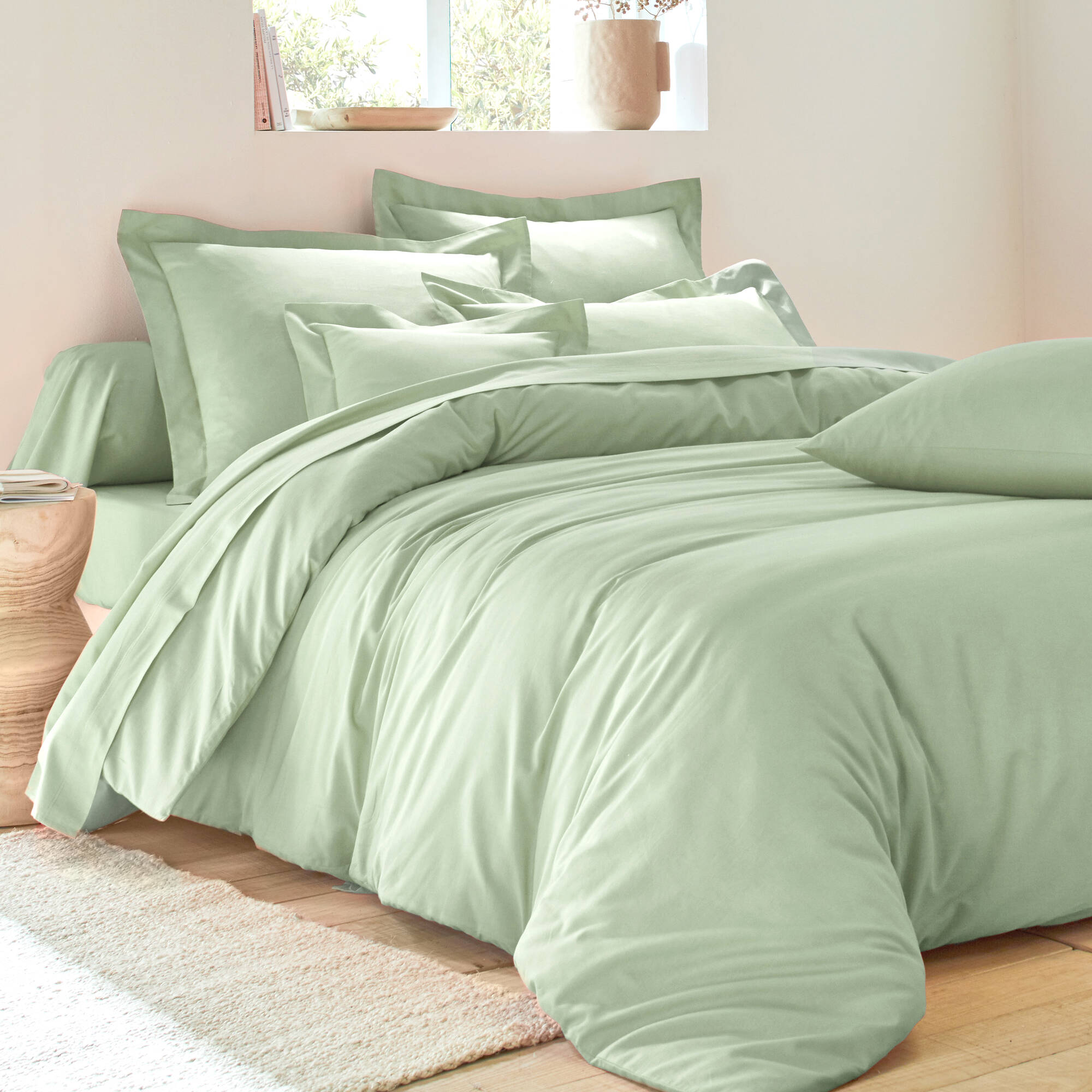 Effen bedlinnen in katoen (amandel groen)