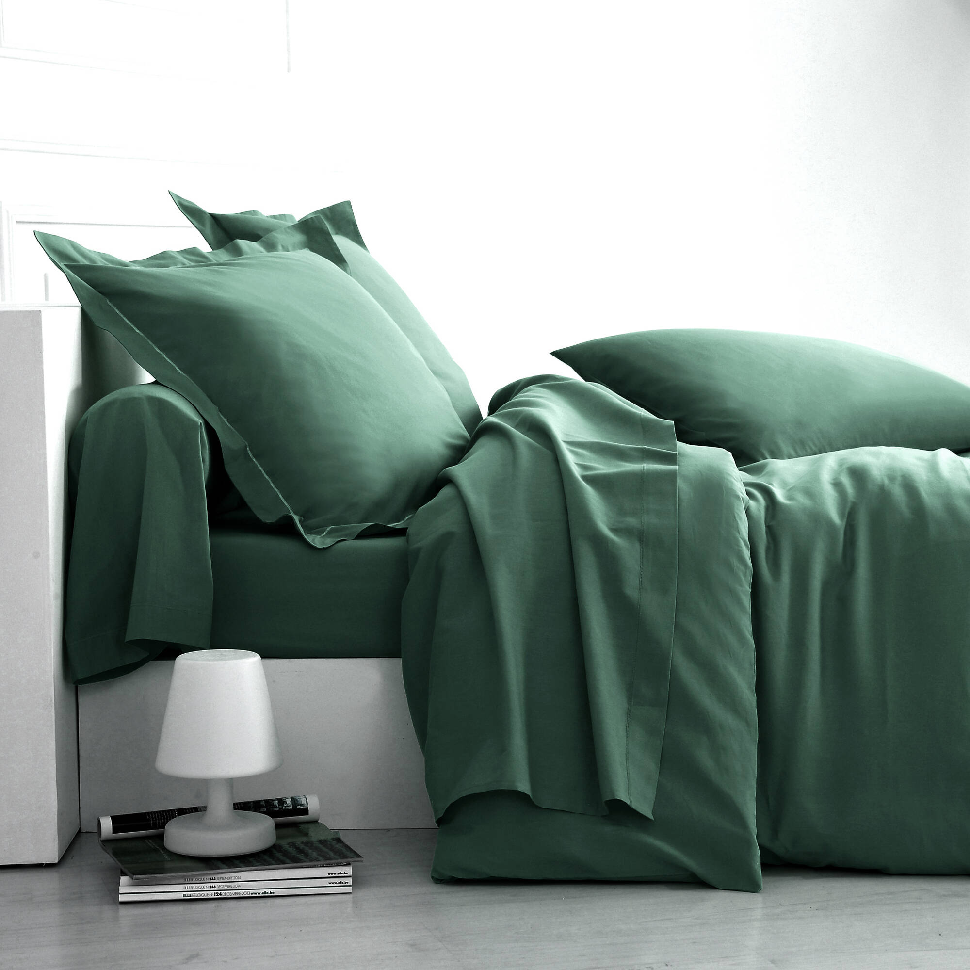 Effen bedlinnen in katoen (dennengroen)