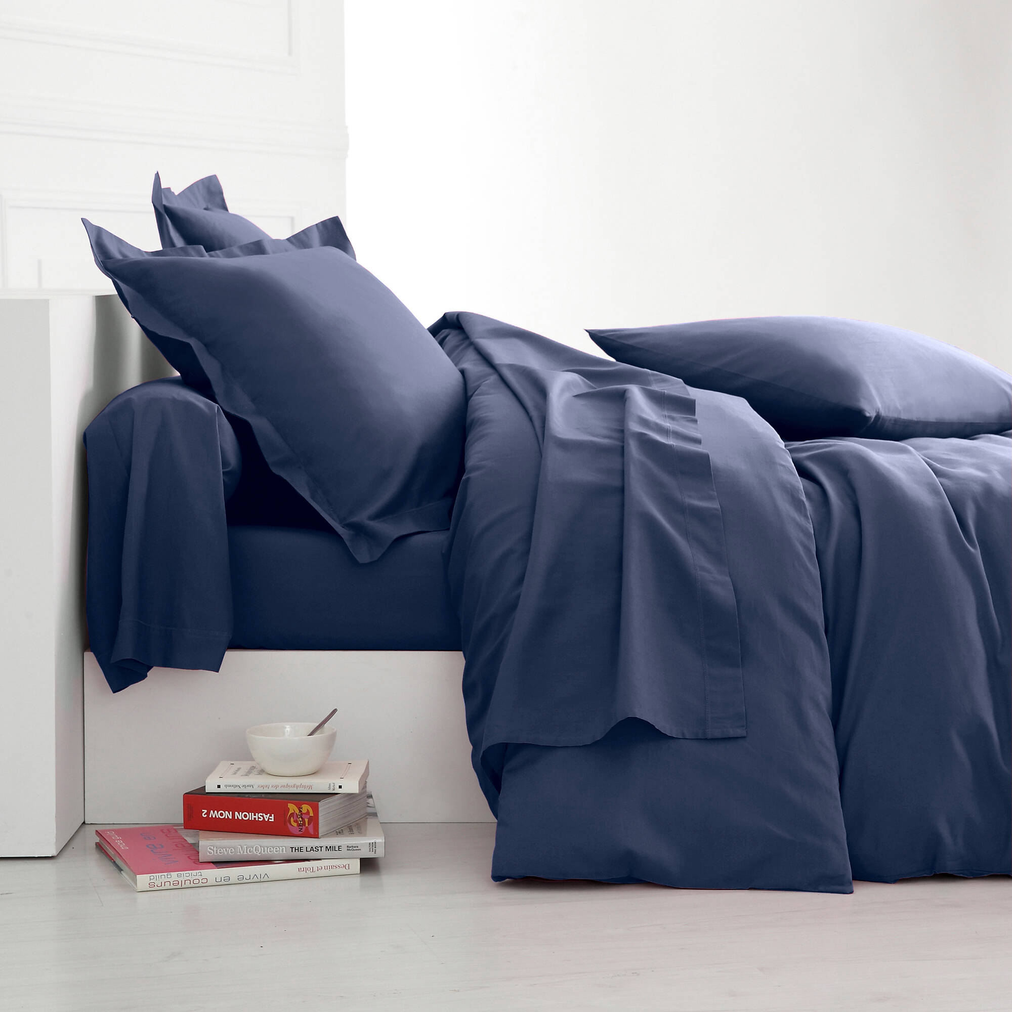 Effen bedlinnen in katoen (marine)