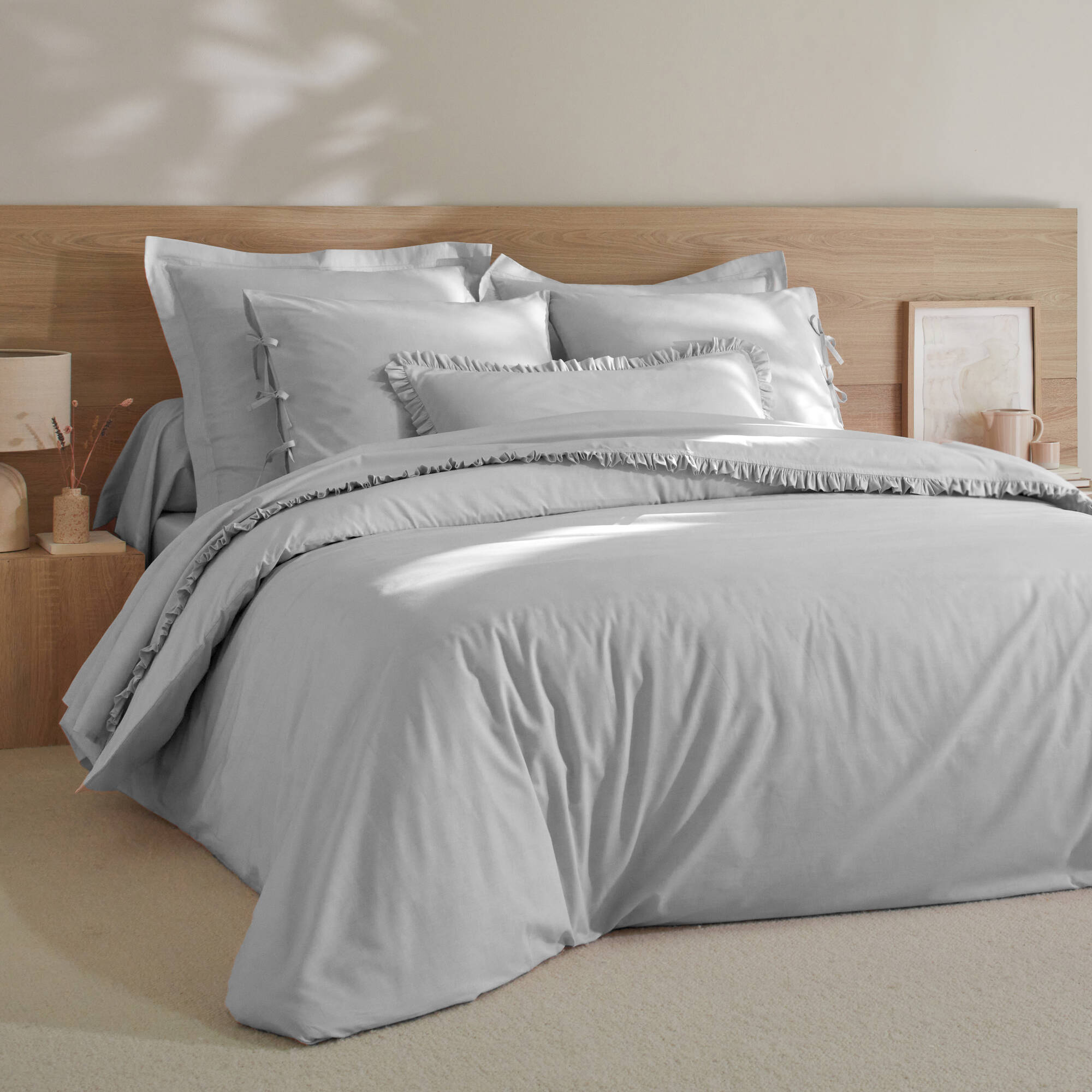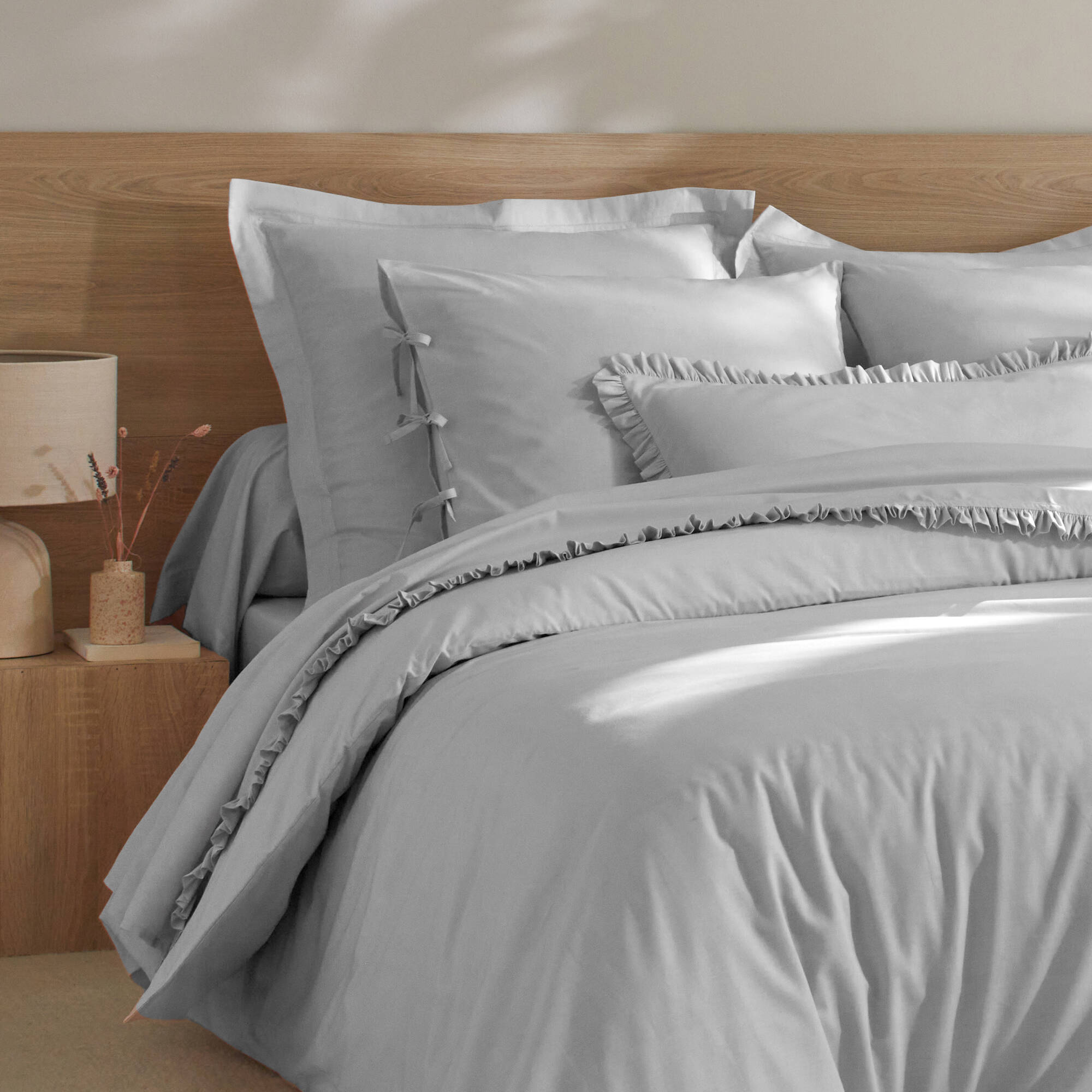 Effen bedlinnen in katoenbatist (parelgrijs)
