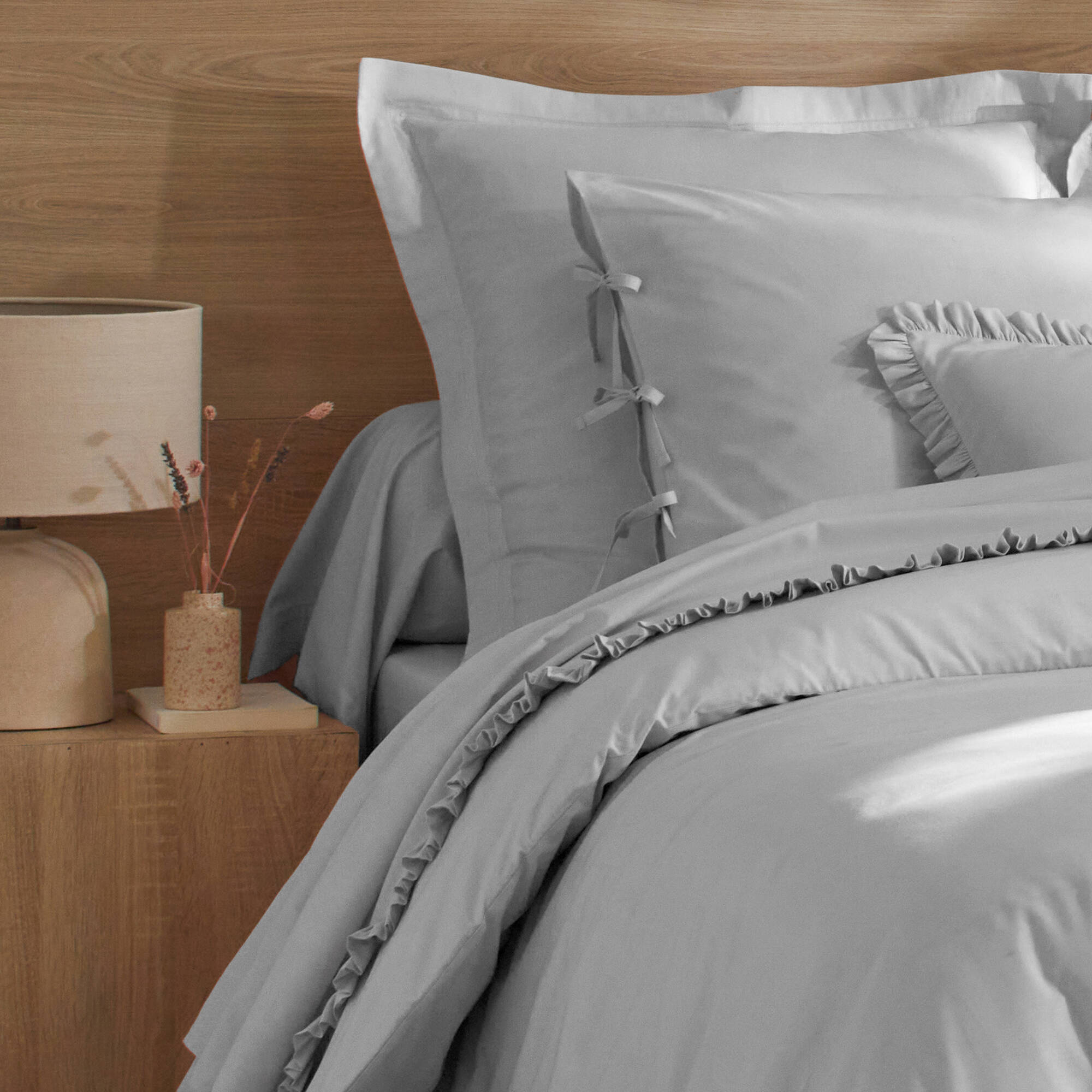 Effen bedlinnen in katoenbatist (parelgrijs)