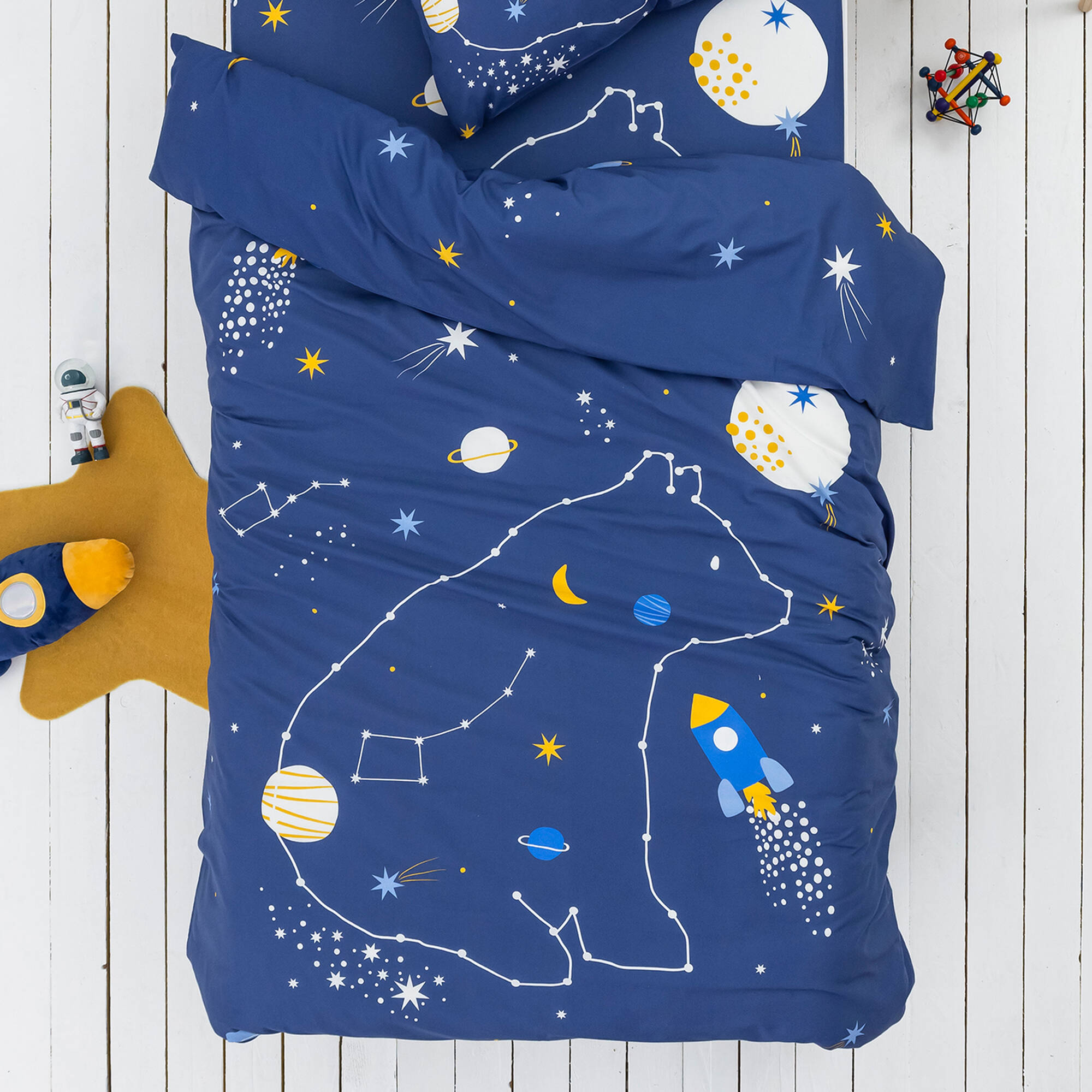 Kinderbedlinnen Melkwegprint - Katoen (marine)