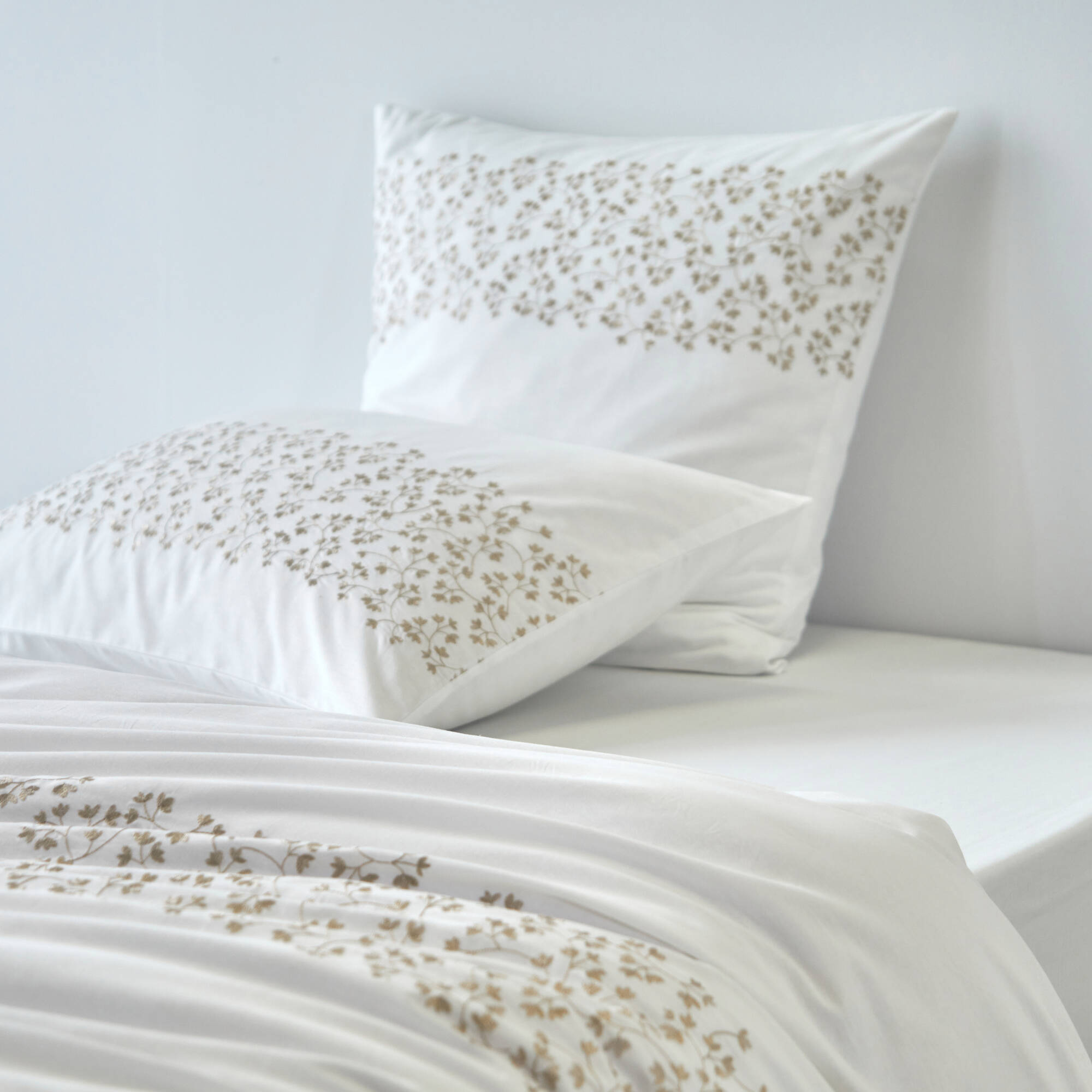 Wit bedlinnen met geborduurd bladerenmotief Colombine® (wit)